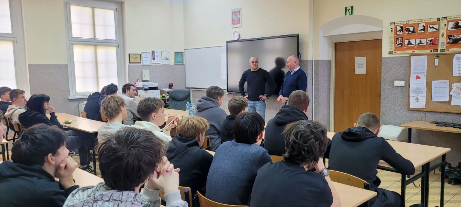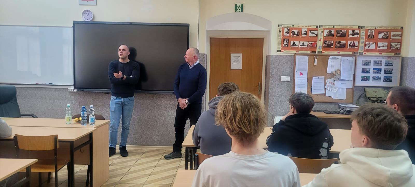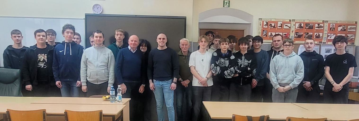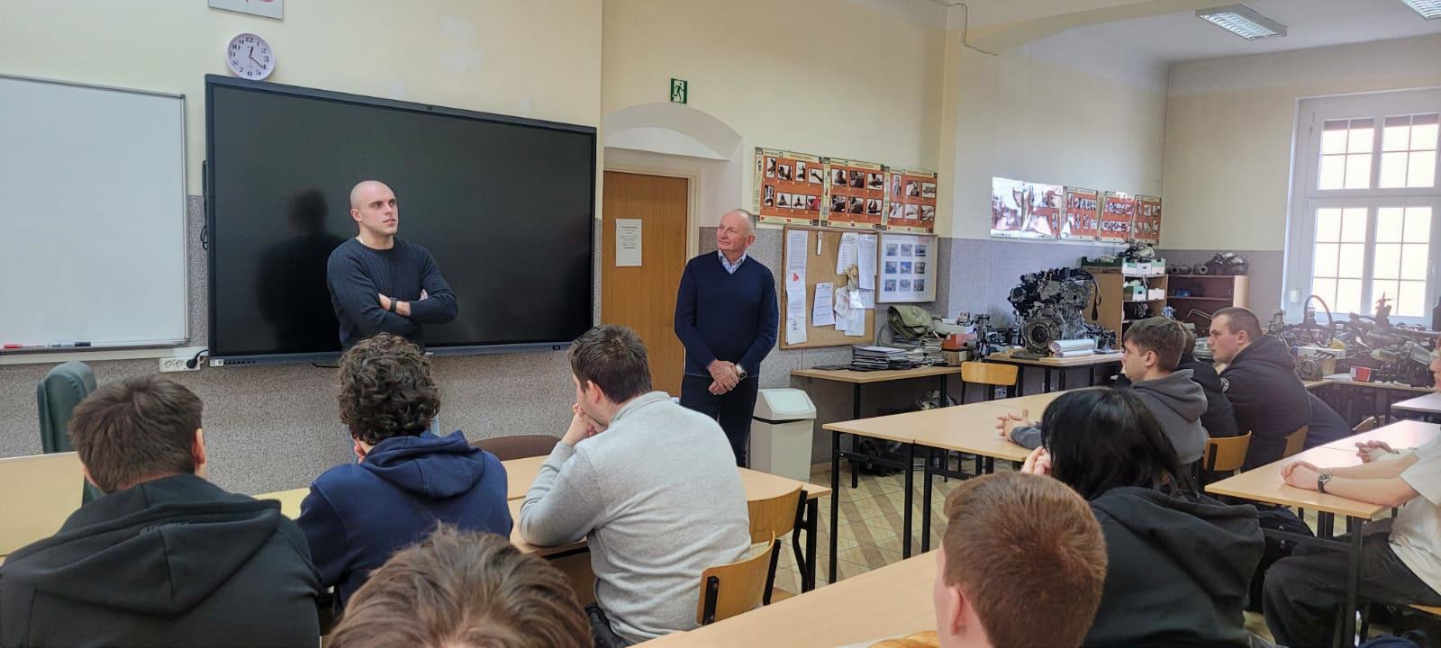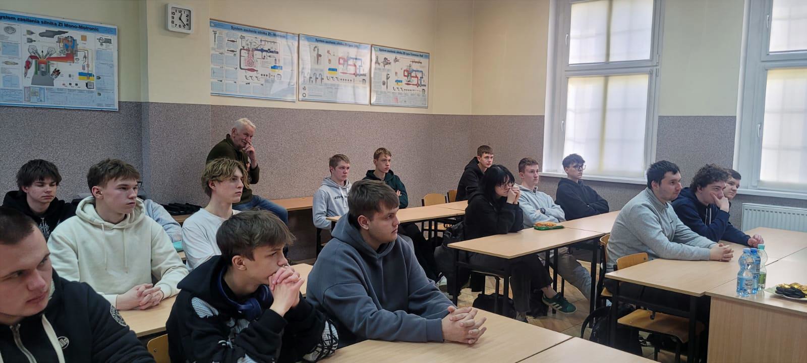 Na zaproszenie uczniów klas 3 i 4 technikum w zawodzie mechanik pojazdów samochodowych oraz nauczycieli Romana Zięby i Leszka Czechowskiego, naszą szkołę odwiedził jej absolwent – Szymon Ostrowski, właściciel warsztatu Szym-Car Mechanika & Autokosmetyka w Pępicach 51.
