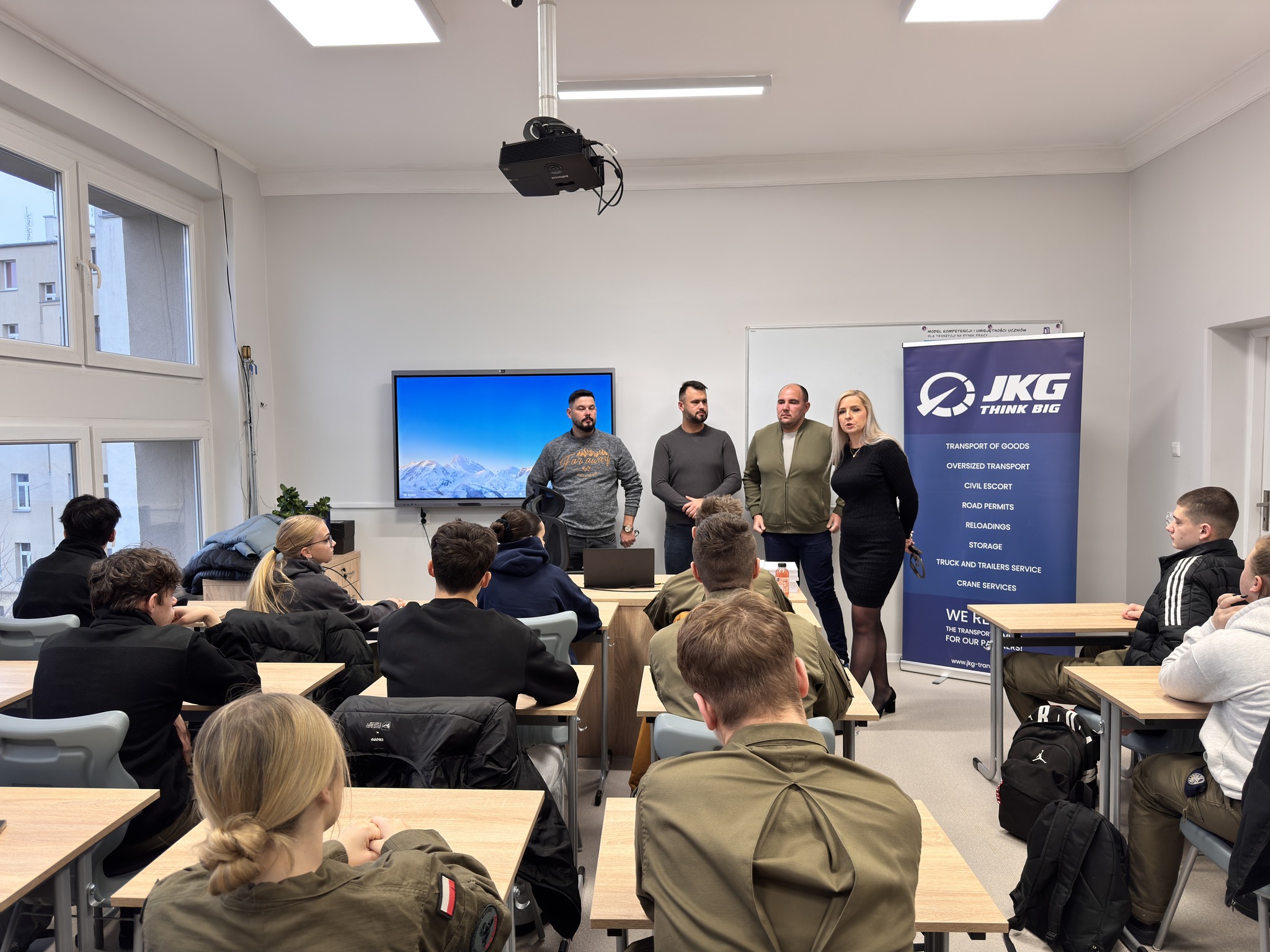 W szkolnych murach gościli przedstawiciele firmy Grupa JKG Transport & Truck Service, a samo wydarzenie odbyło się dzięki współpracy z Akademią Nauk Stosowanych WSZiA w Opolu. To nie było zwykłe spotkanie informacyjne – to była prawdziwa podróż w głąb transportu i spedycji.