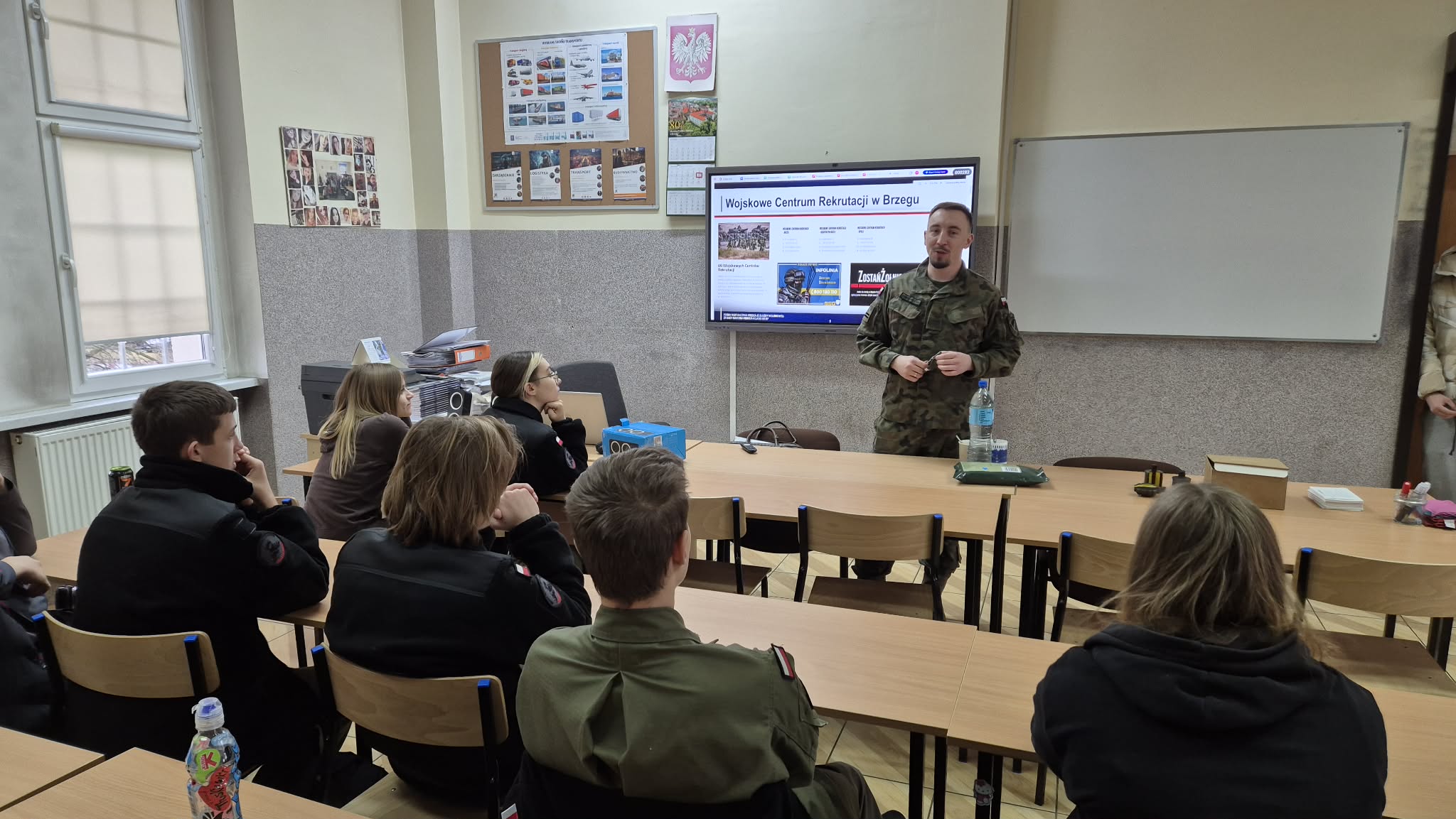 8 grudnia klasa 2 TSS z Oddziału Przygotowania Wojskowego wzięła udział w spotkaniu z Mobilnym Zespołem Rekrutacyjnym WCR w Brzegu. Była to świetna okazja, aby poszerzyć swoją wiedzę o służbie wojskowej i zobaczyć, jakie możliwości daje dalsza edukacja oraz rozwój w strukturach Wojska Polskiego.