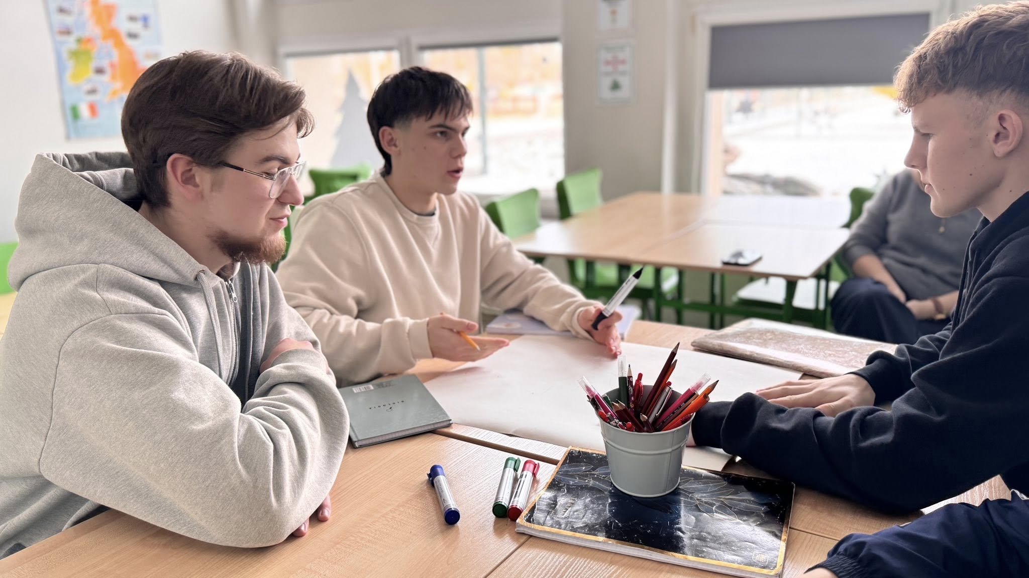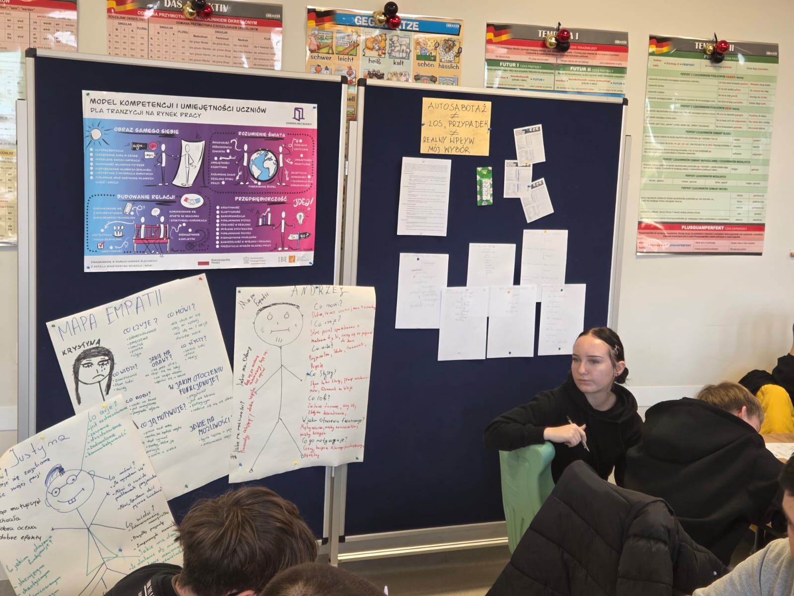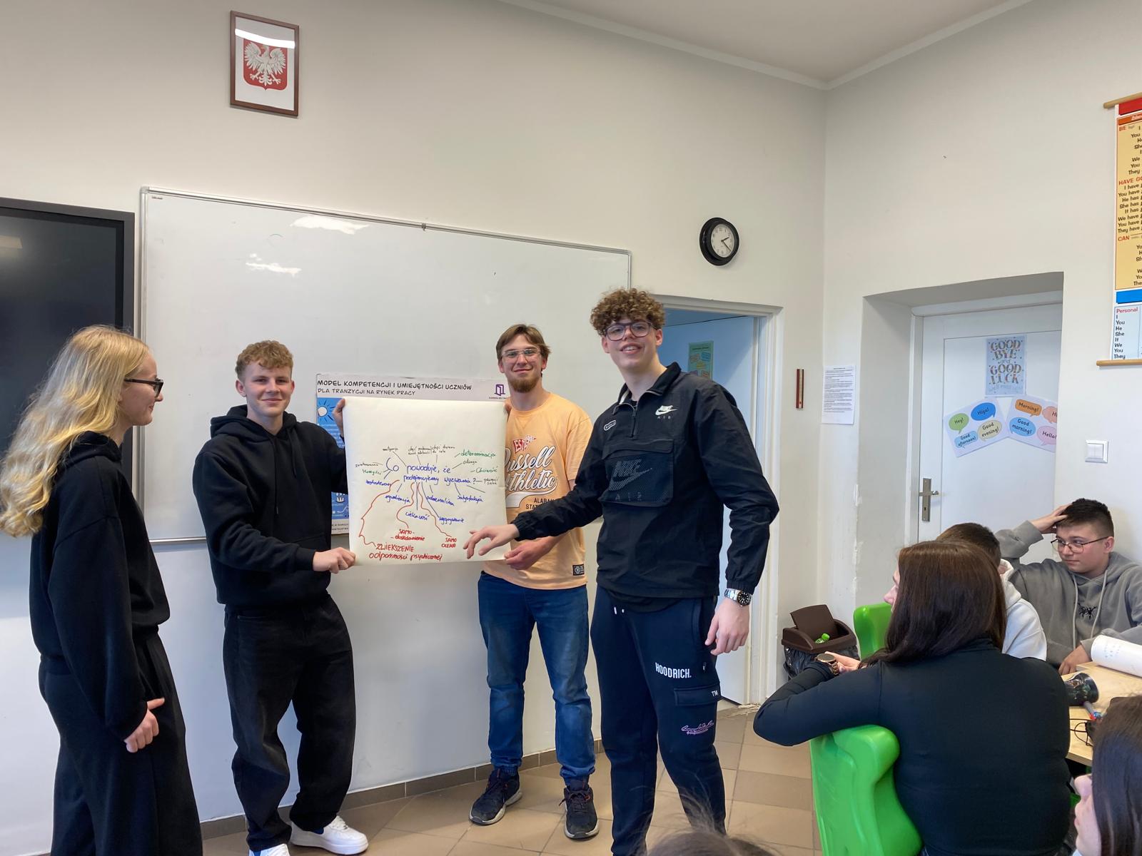 Podczas zajęć uczniowie w grupach tworzyli portret „modelowego ucznia”, próbując odpowiedzieć na pytanie: czego naprawdę potrzebuje młody człowiek, aby osiągnąć sukces w nauce i w życiu zawodowym?