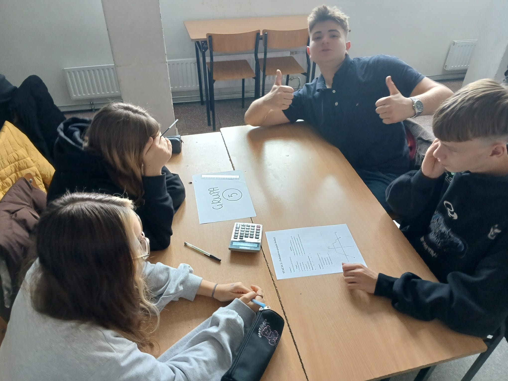 Podczas zajęć uczniowie pracowali w grupach nad zadaniami związanymi z funkcjami matematycznymi – ich rozpoznawaniem, opisywaniem oraz interpretacją na wykresach. Zastosowanie wiedzy w praktycznych kontekstach, takich jak branża motoryzacyjna i logistyczna, pozwoliło uczniom dostrzec realne znaczenie matematyki w zawodzie.