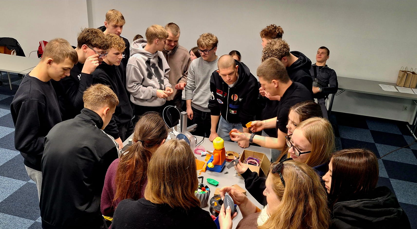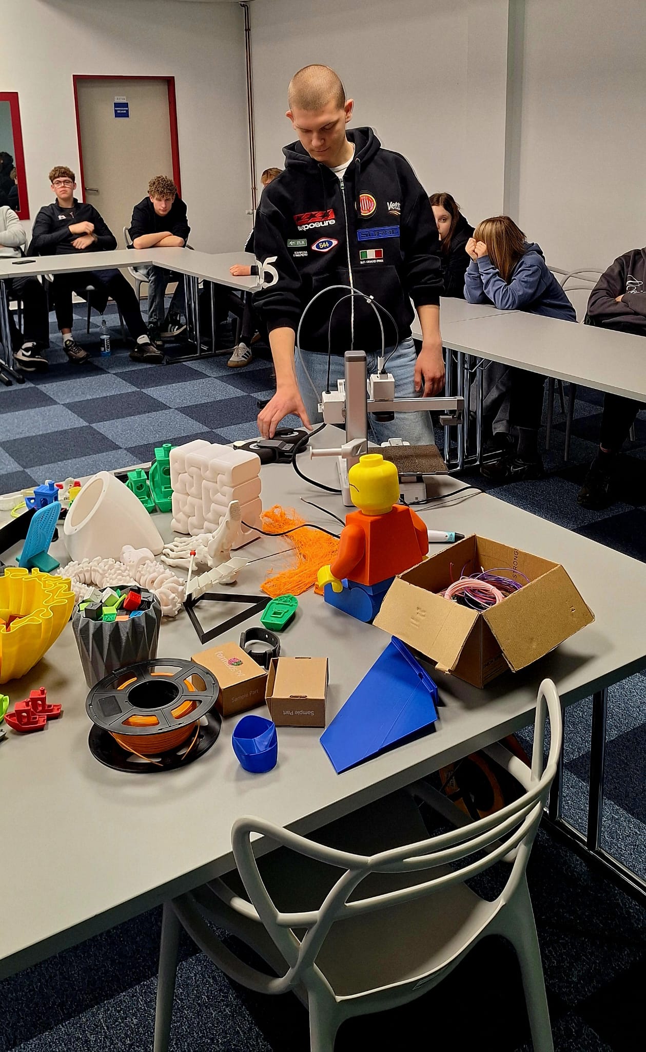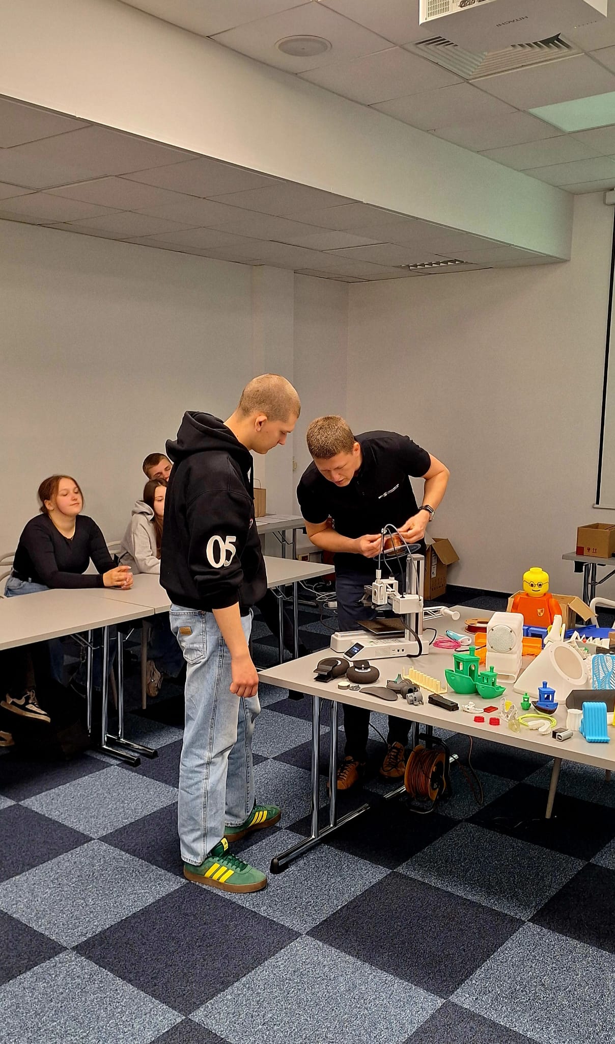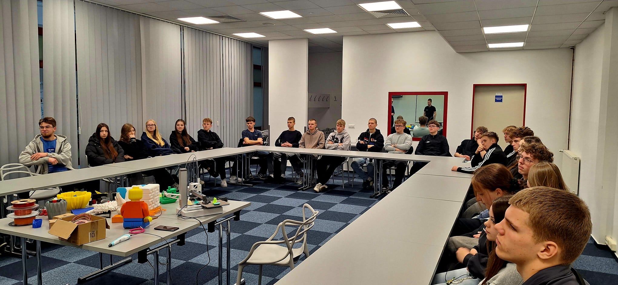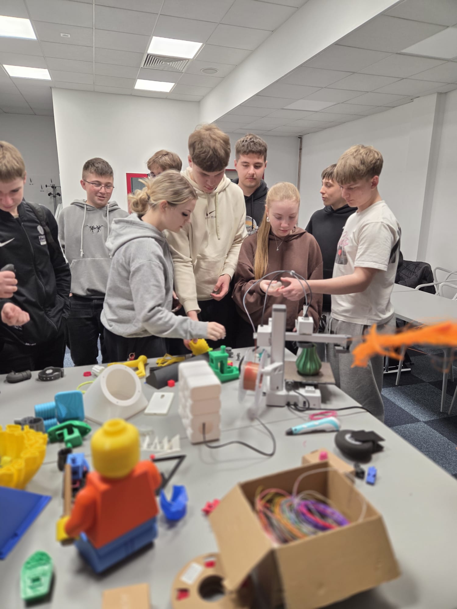Poruszane zagadnienia dotyczyły m.in. nowoczesnych technologii, w tym druku 3D, który coraz częściej znajduje zastosowanie w różnych branżach i staje się ważnym elementem współczesnego rynku pracy. Uczniowie mieli okazję dowiedzieć się, jak działa ta technologia oraz gdzie może być wykorzystywana w przyszłości.