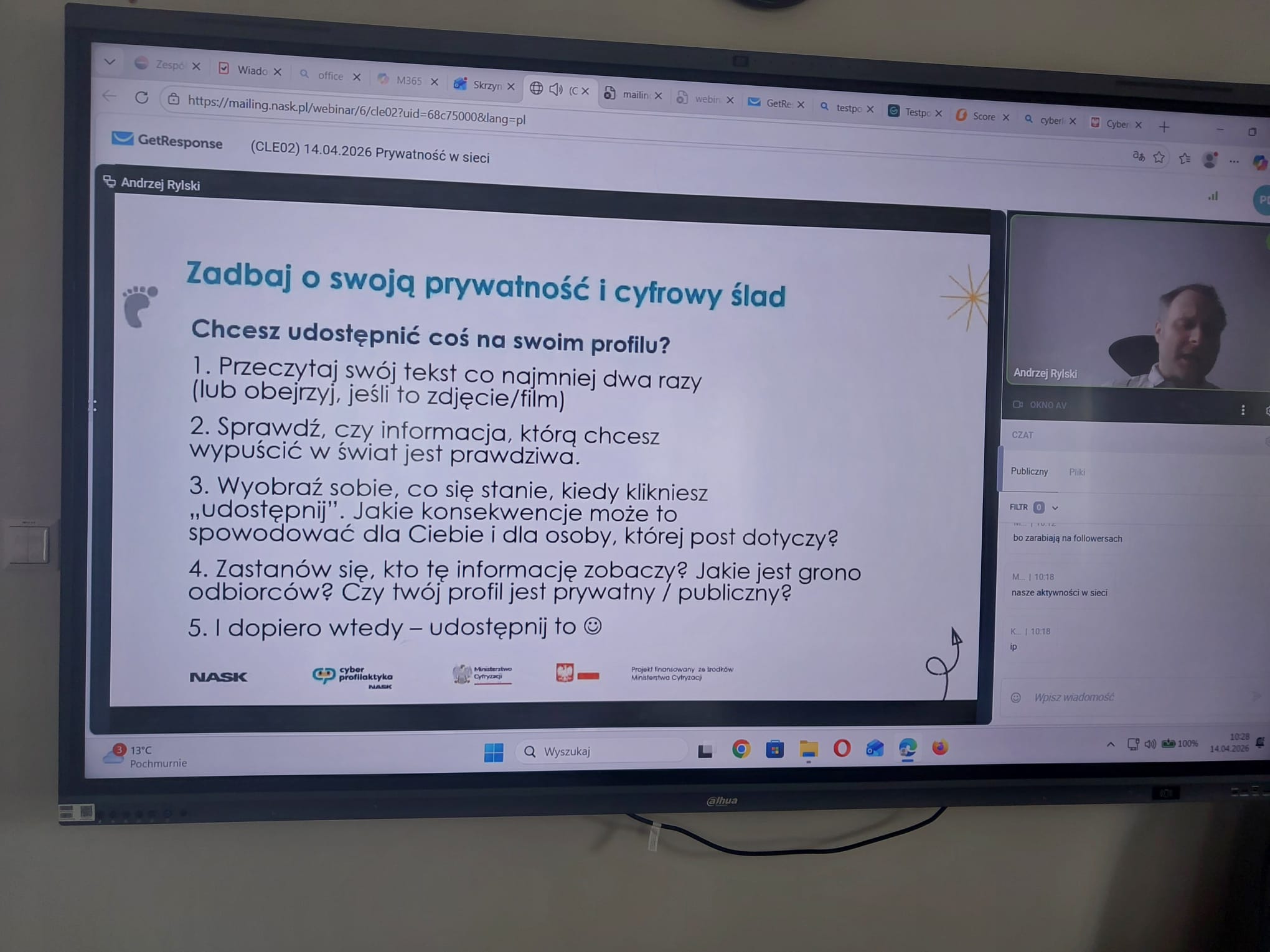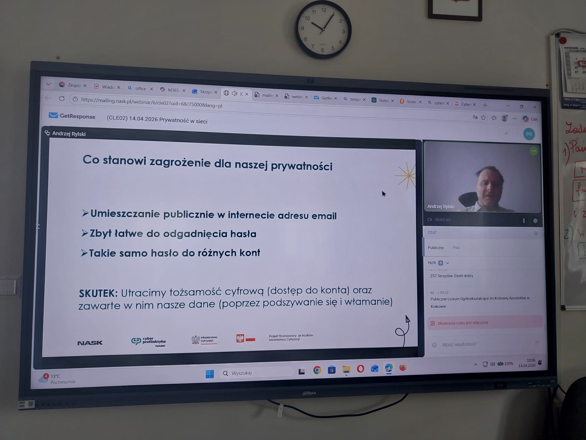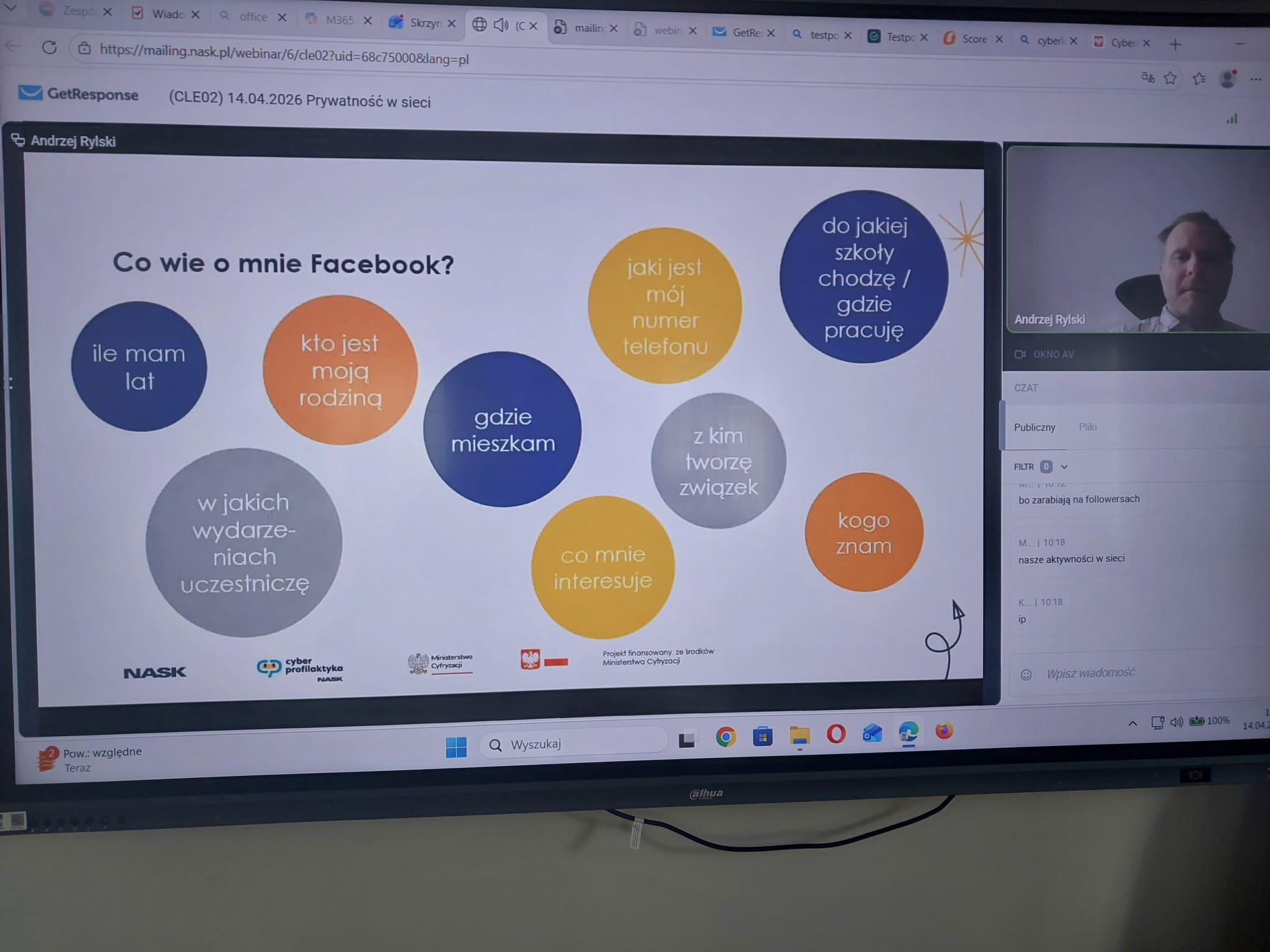 Tematem zajęć była „Prywatność w sieci”. Uczniowie mieli możliwość udzielania odpowiedzi za pośrednictwem komunikatora internetowego, co sprzyjało ich aktywności i zaangażowaniu.