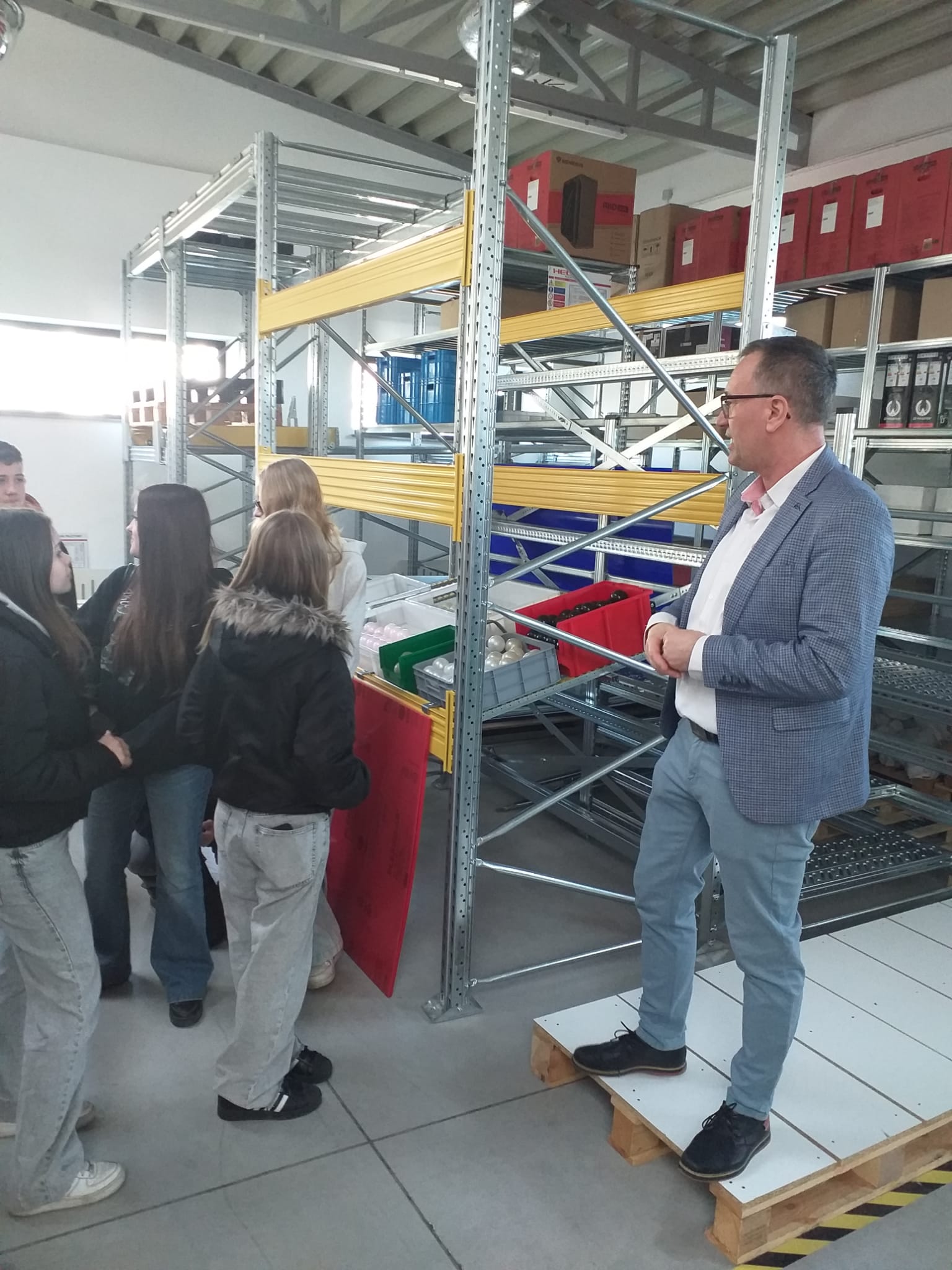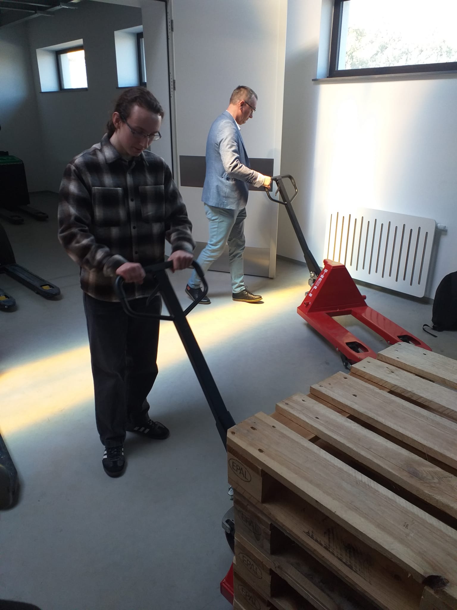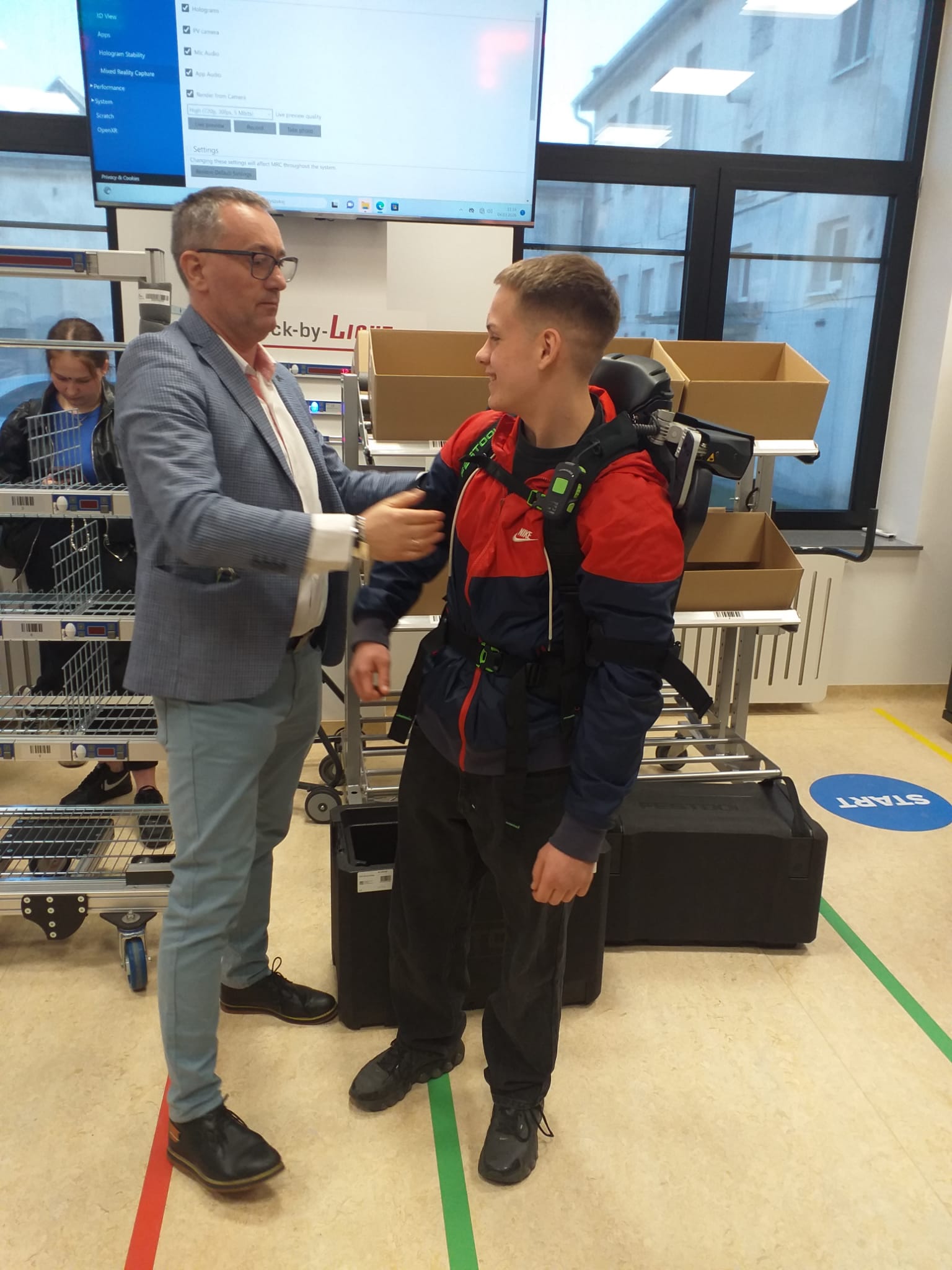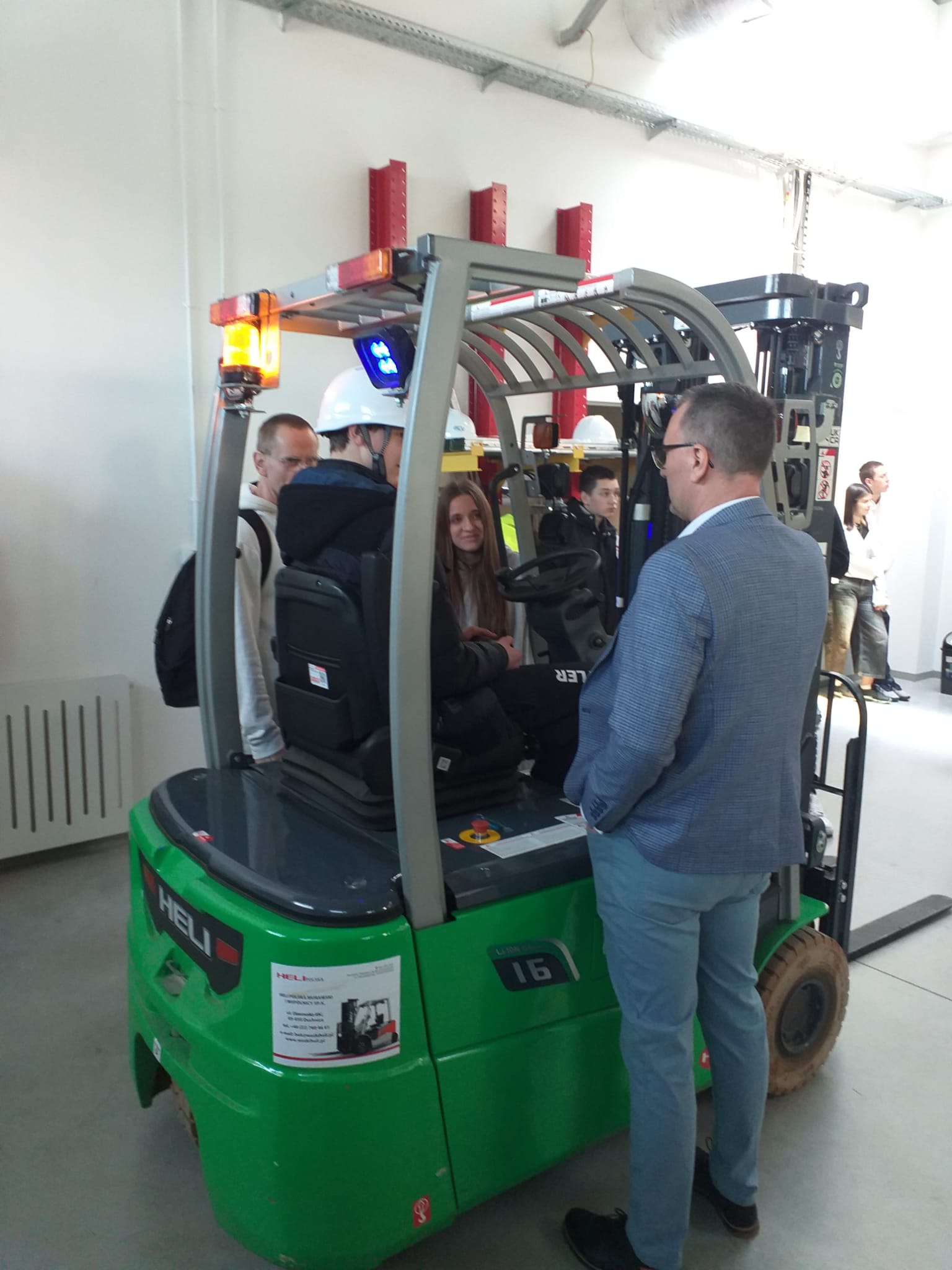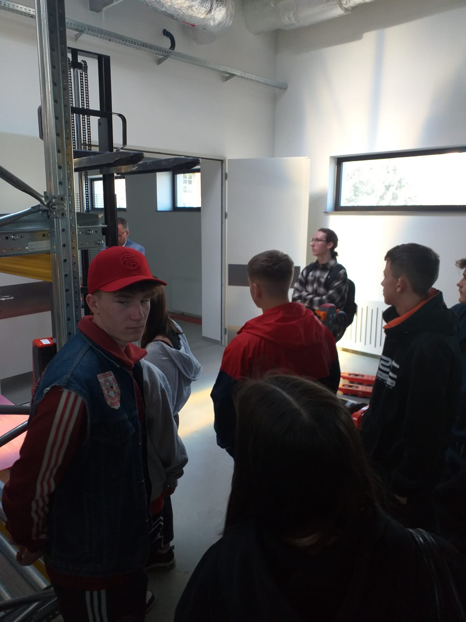 Kolejnym punktem wycieczki było BCU w Grodkowie. Tam uczniów przyjął kierownik Roman Kępiński, który zaprezentował nowoczesny magazyn szkoleniowy. Młodzież mogła zobaczyć i wypróbować różne rozwiązania stosowane w logistyce – regały magazynowe, czytniki, systemy wspierające pracę magazynu, wózki transportowe, a nawet egzoszkielet ułatwiający pracę magazyniera. To było praktyczne spojrzenie na nowoczesne technologie, które coraz częściej wspierają branżę logistyczną.