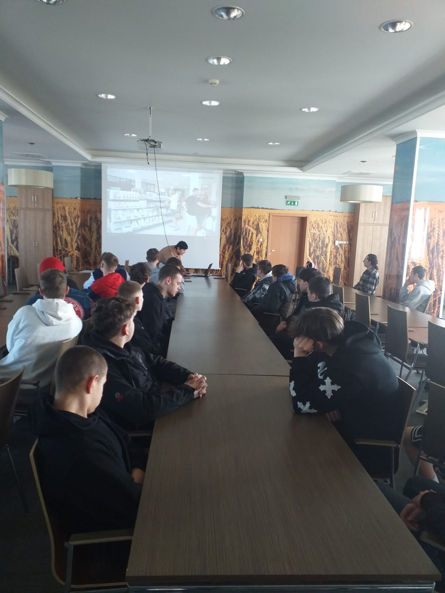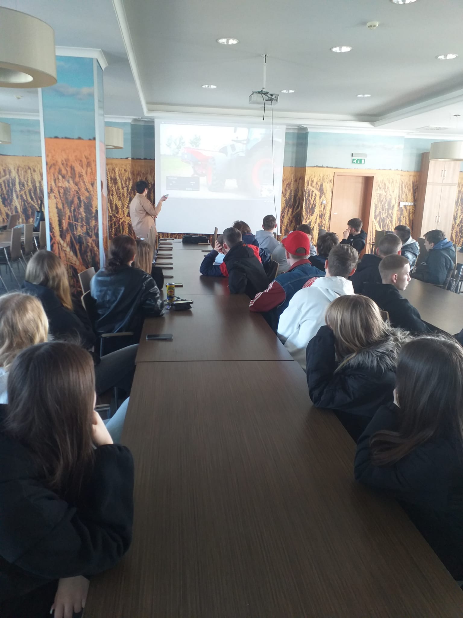 W AgroAs uczniów przyjęła Pani Barbara Krząstek – Dyrektor Personalna firmy. Opowiedziała o działalności przedsiębiorstwa i oprowadziła po kluczowych miejscach z perspektywy logistyka. Młodzież mogła zobaczyć, jak funkcjonuje centrum logistyczne, w którym łączy się zarządzanie towarem, magazynowanie, handel oraz transport – realizowany zarówno własną flotą, jak i przez zewnętrznych przewoźników. To pokaz praktycznego działania łańcucha dostaw w realnej firmie.