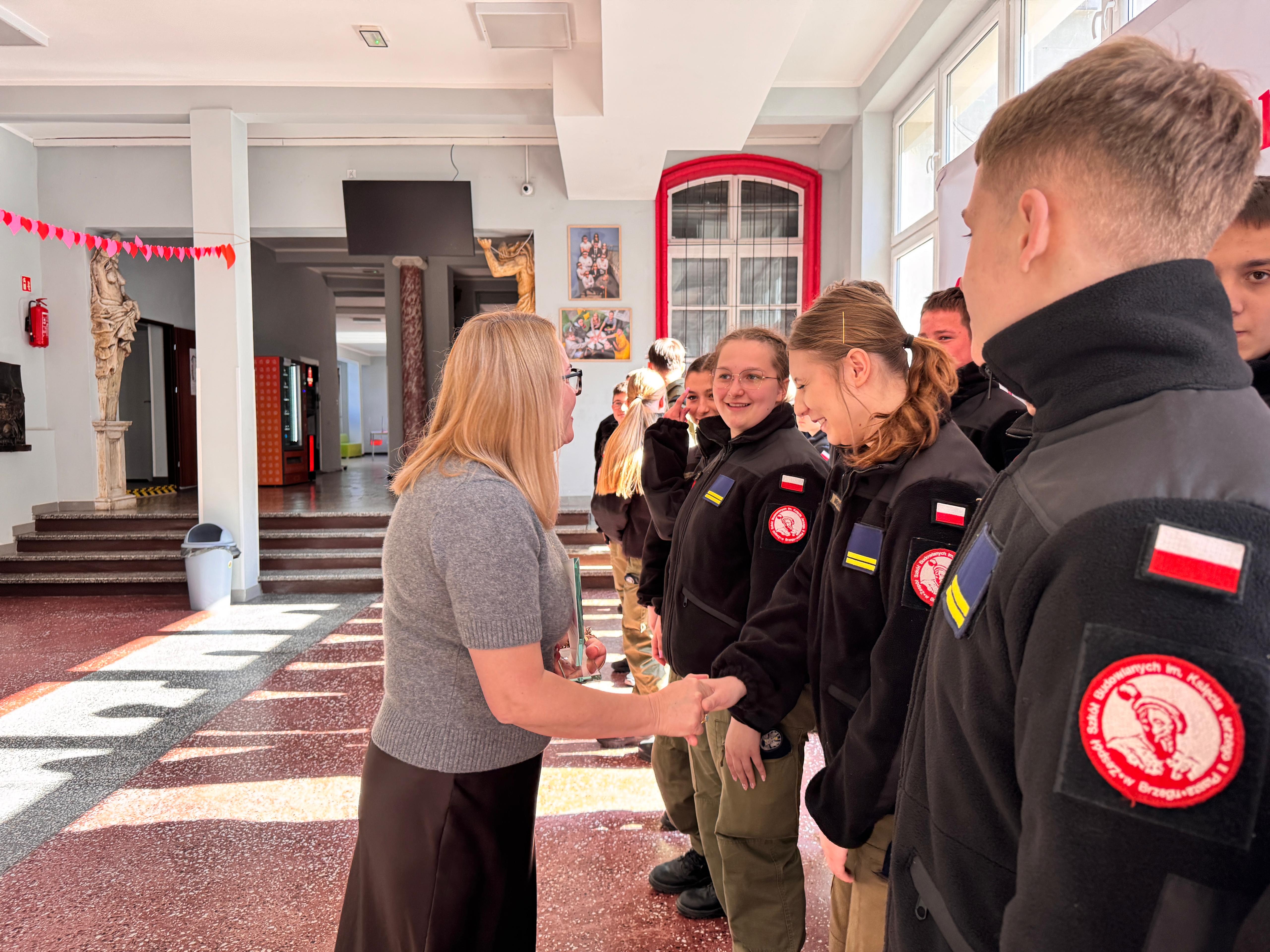 Pani Dyrektor Renata Jabłońska-Denes złożyła gratulacje i podziękowania naszym uczniom z oddziałów przygotowania wojskowego za zdobycie 3. miejsca wśród 8 szkół w Wojewódzkim Turnieju Musztry Klas Mundurowych w Opolu!