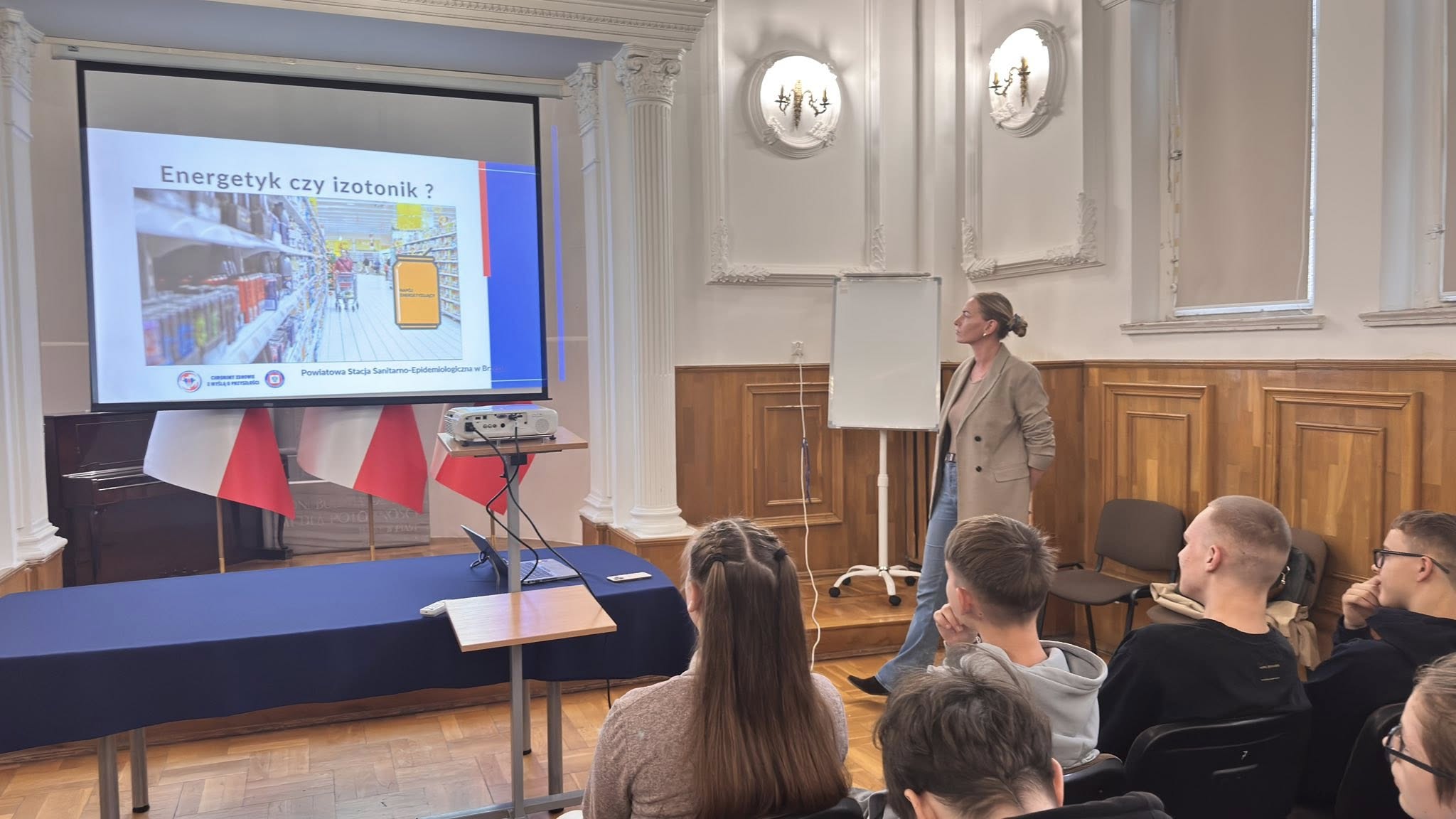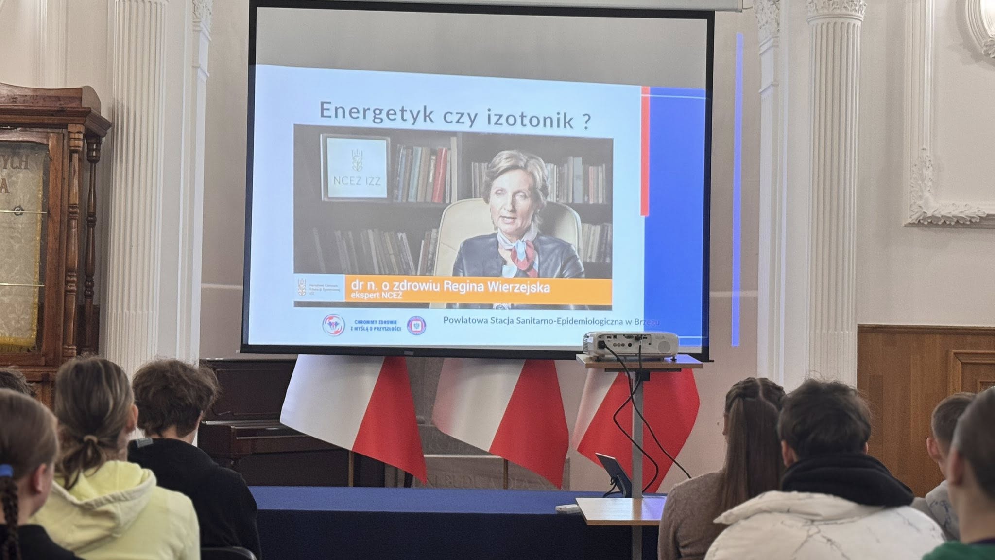 W naszej szkole odbyÅ‚o siÄ™ spotkanie z PaniÄ… KarinÄ… KucharskÄ… z Powiatowej Stacji Sanitarno-Epidemiologicznej w Brzegu, podczas którego uczniowie klas 3 TSW, 2A, 3D oraz 1B dowiedzieli siÄ™, dlaczego napoje energetyczne sÄ… tak niebezpieczne – zwÅ‚aszcza dla mÅ‚odych organizmów.\
