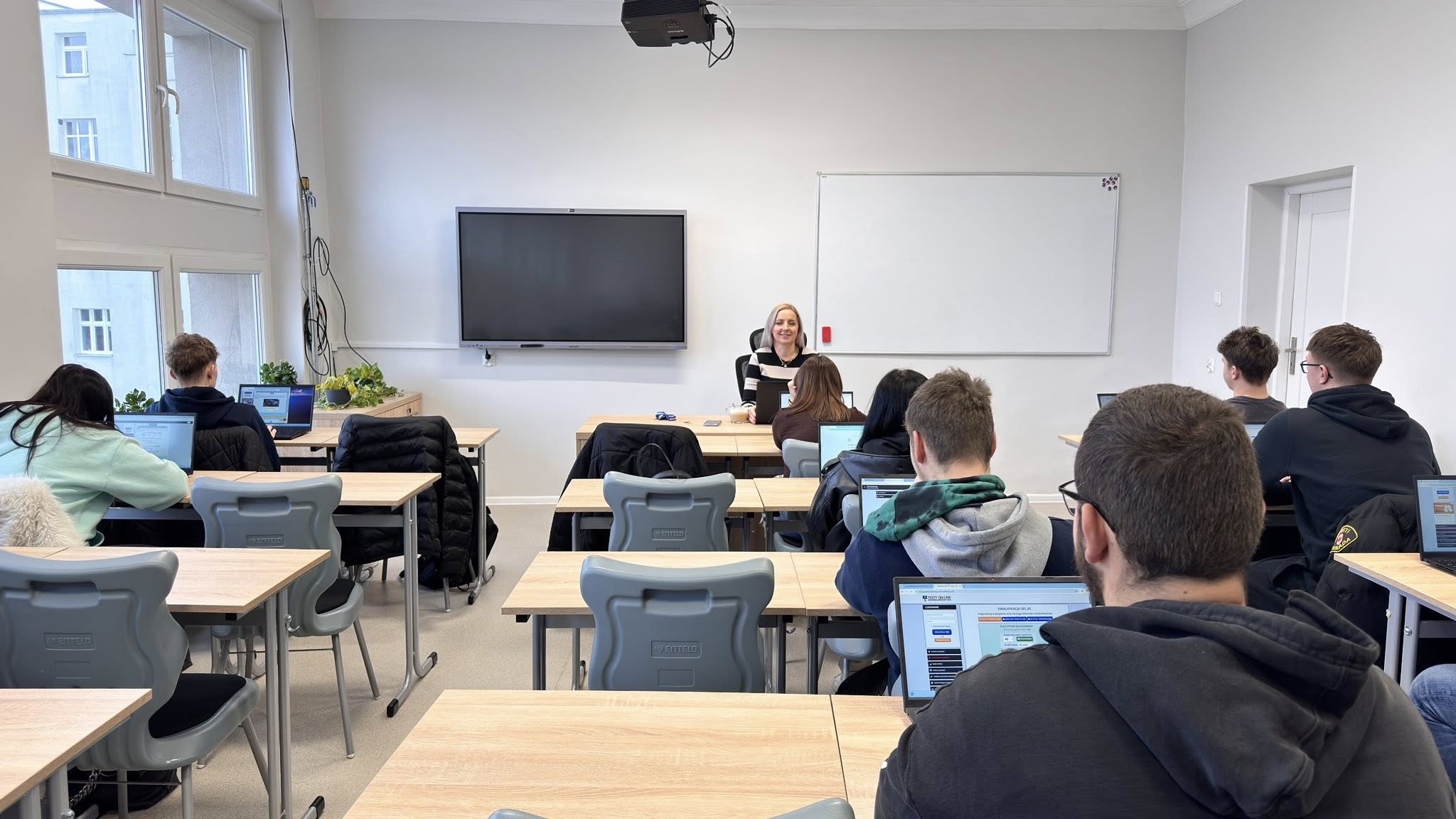 Jasna, czysta, przejrzysta sala, wygodne krzesła i ławki , a do tego każdy uczeń z własnym laptopem. W takich warunkach nauka naprawdę nabiera tempa