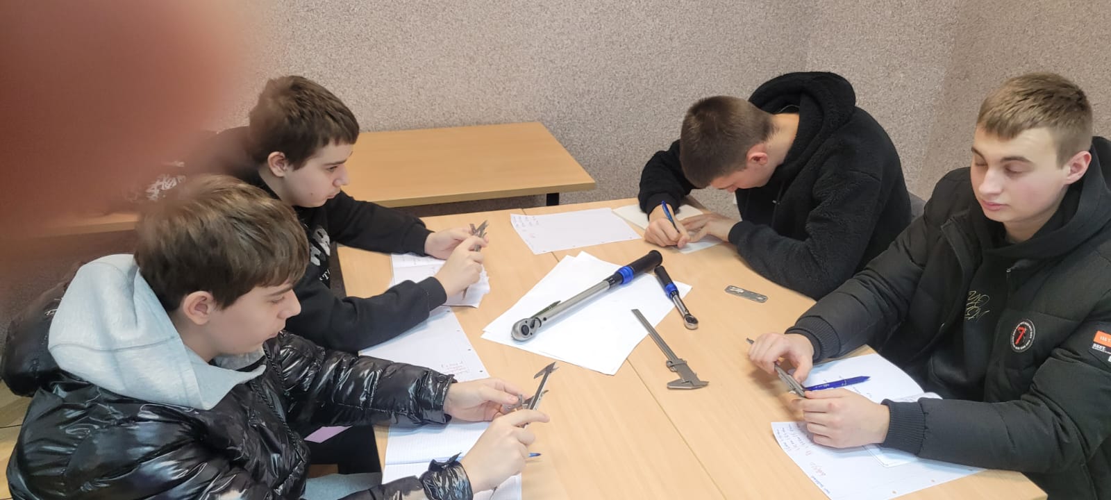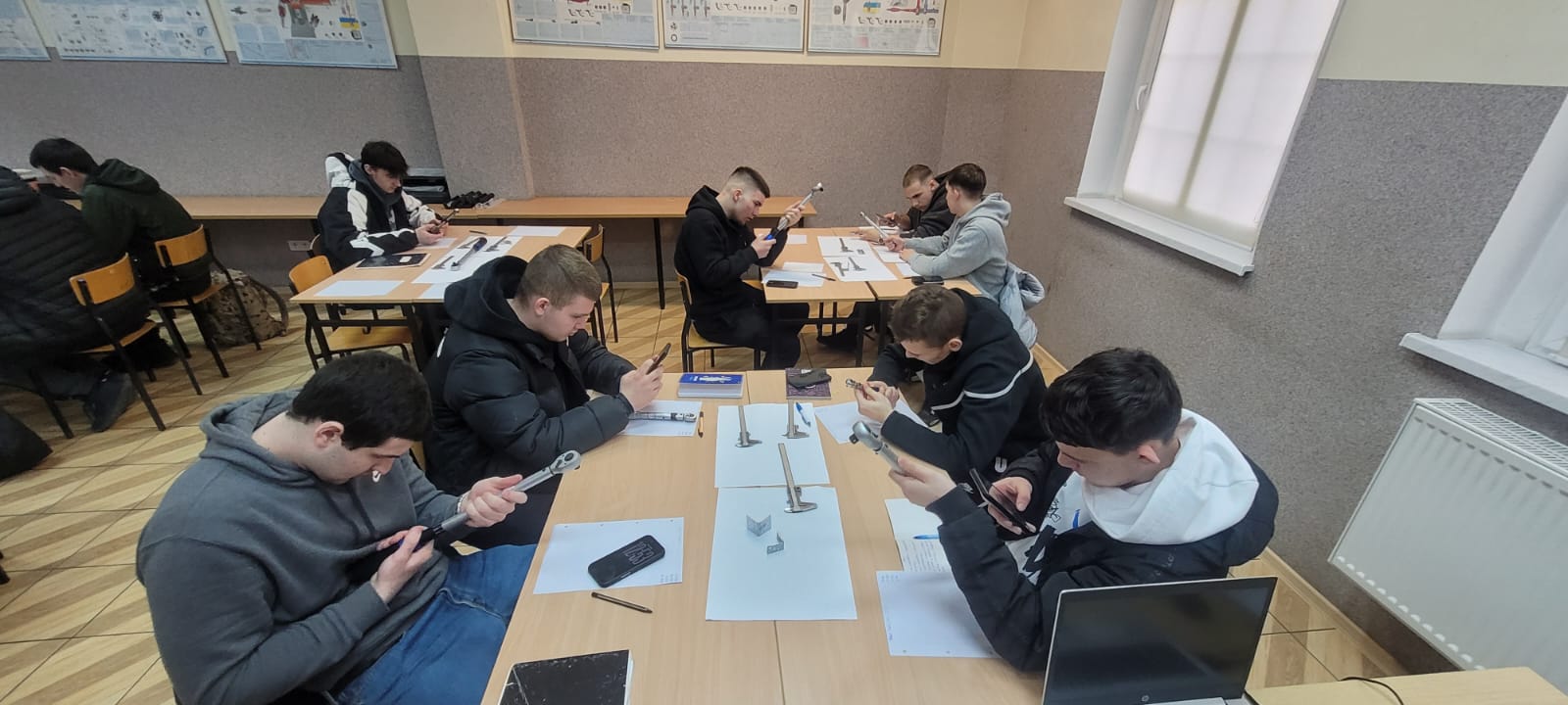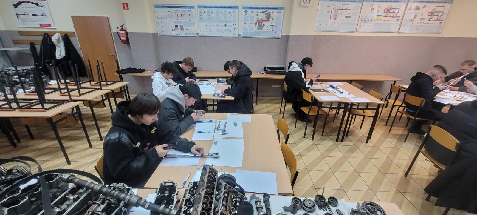 W tym tygodniu uczniowie klasy II B i II B w zawodzie mechanik pojazdów samochodowych na zajęciach z „Diagnostyki i naprawy pojazdów samochodowych” z Romanem Zięba wykonywali pomiary warsztatowe przygotowując się do egzaminu zawodowego. Wykonywali m.in. nastawianie kluczy dynamometrycznych na określone wartości momentów siły dokręcania połączeń śrubowych i pomiary grubości klocków hamulcowych z użyciem suwmiarki. Pomimo początkowych trudności wynik ostateczny był pozytywny co było wynikiem koncentracji i dokładności.