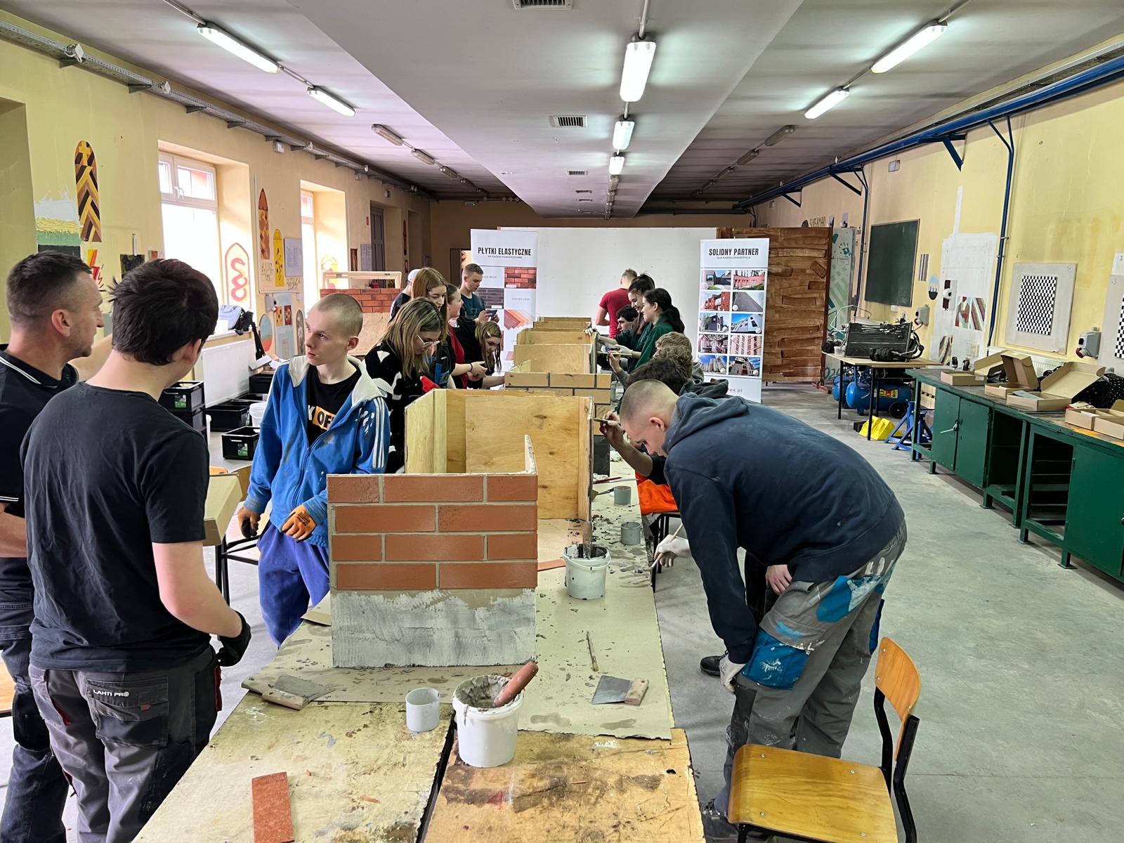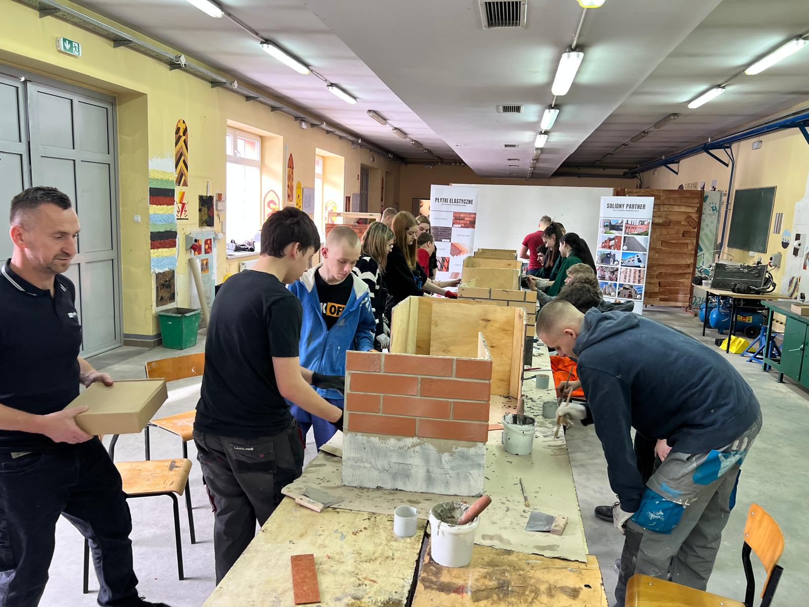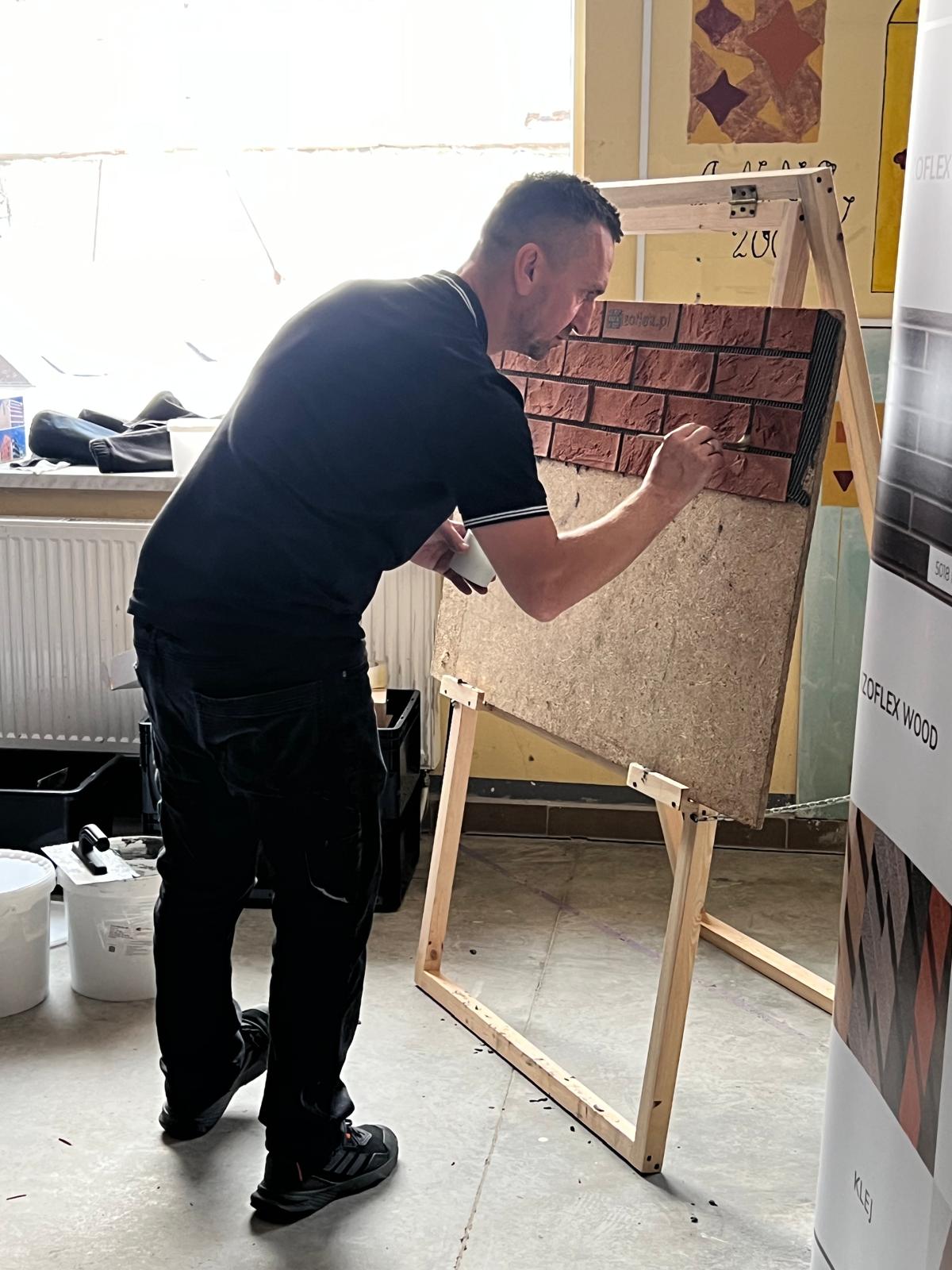 Druga część miała charakter warsztatowy. Pod okiem specjalistów młodzież samodzielnie ćwiczyła układanie płytek, dzięki czemu mogła sprawdzić, jak wygląda praca z nowoczesnym materiałem w praktyce.