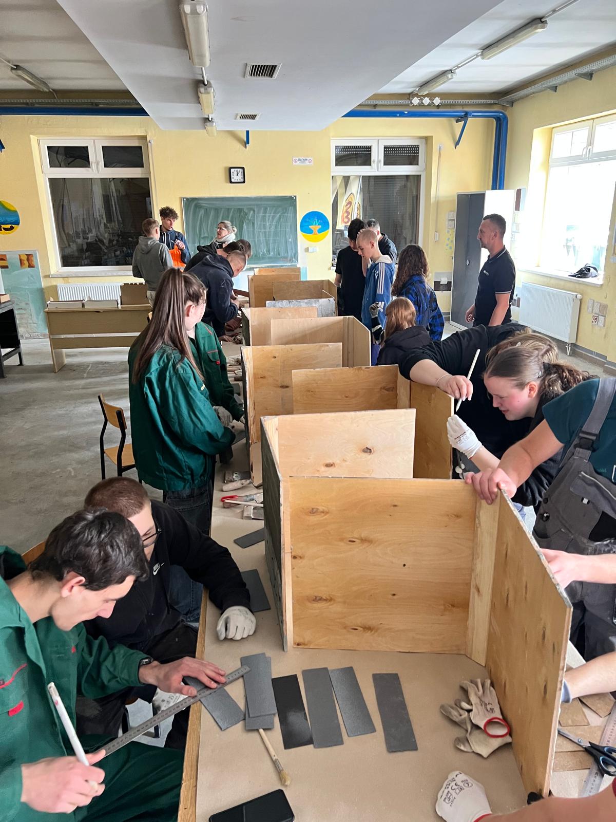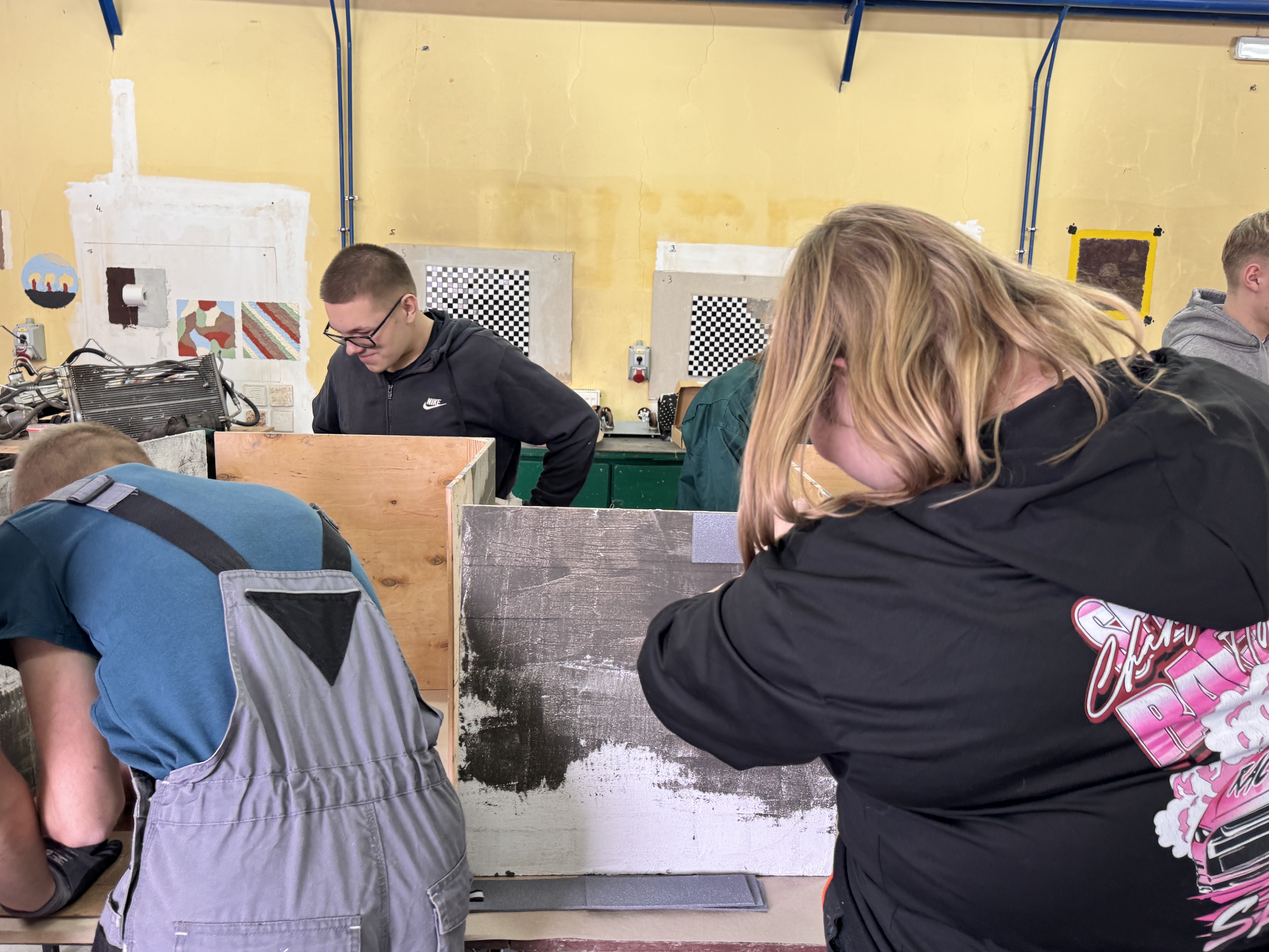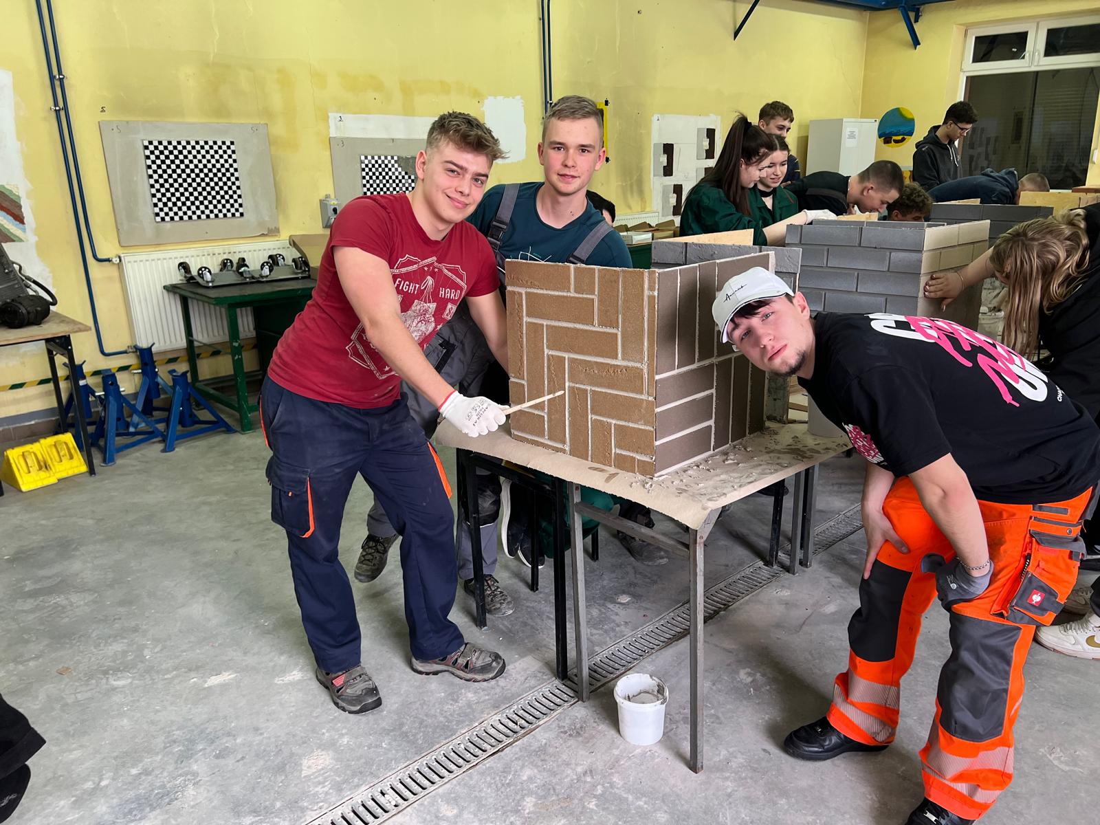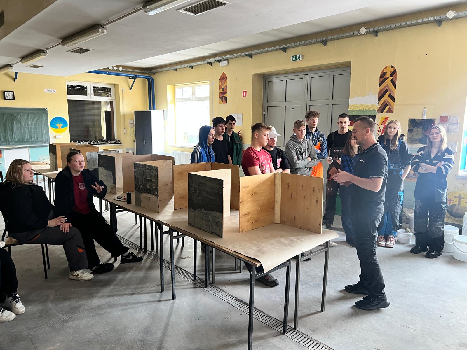 Druga część miała charakter warsztatowy. Pod okiem specjalistów młodzież samodzielnie ćwiczyła układanie płytek, dzięki czemu mogła sprawdzić, jak wygląda praca z nowoczesnym materiałem w praktyce.