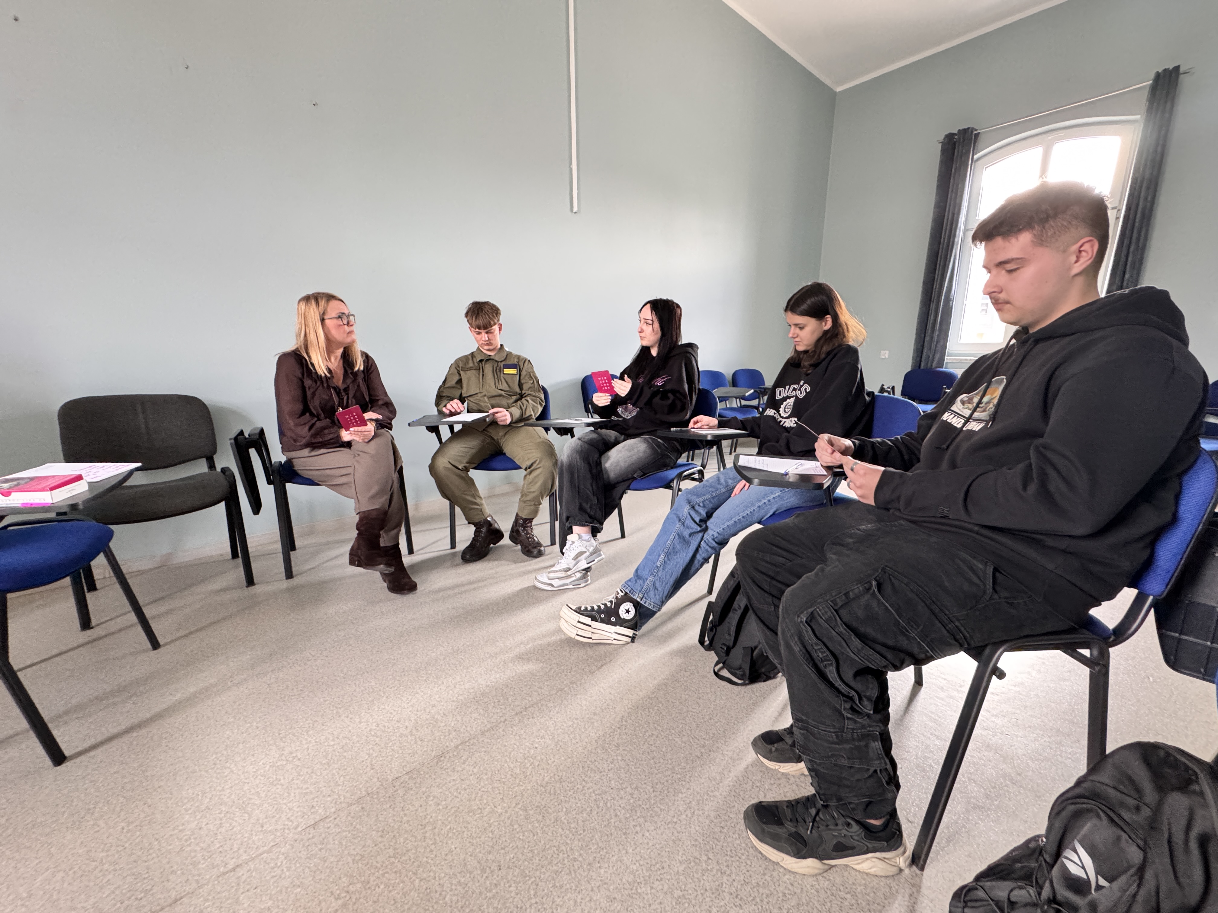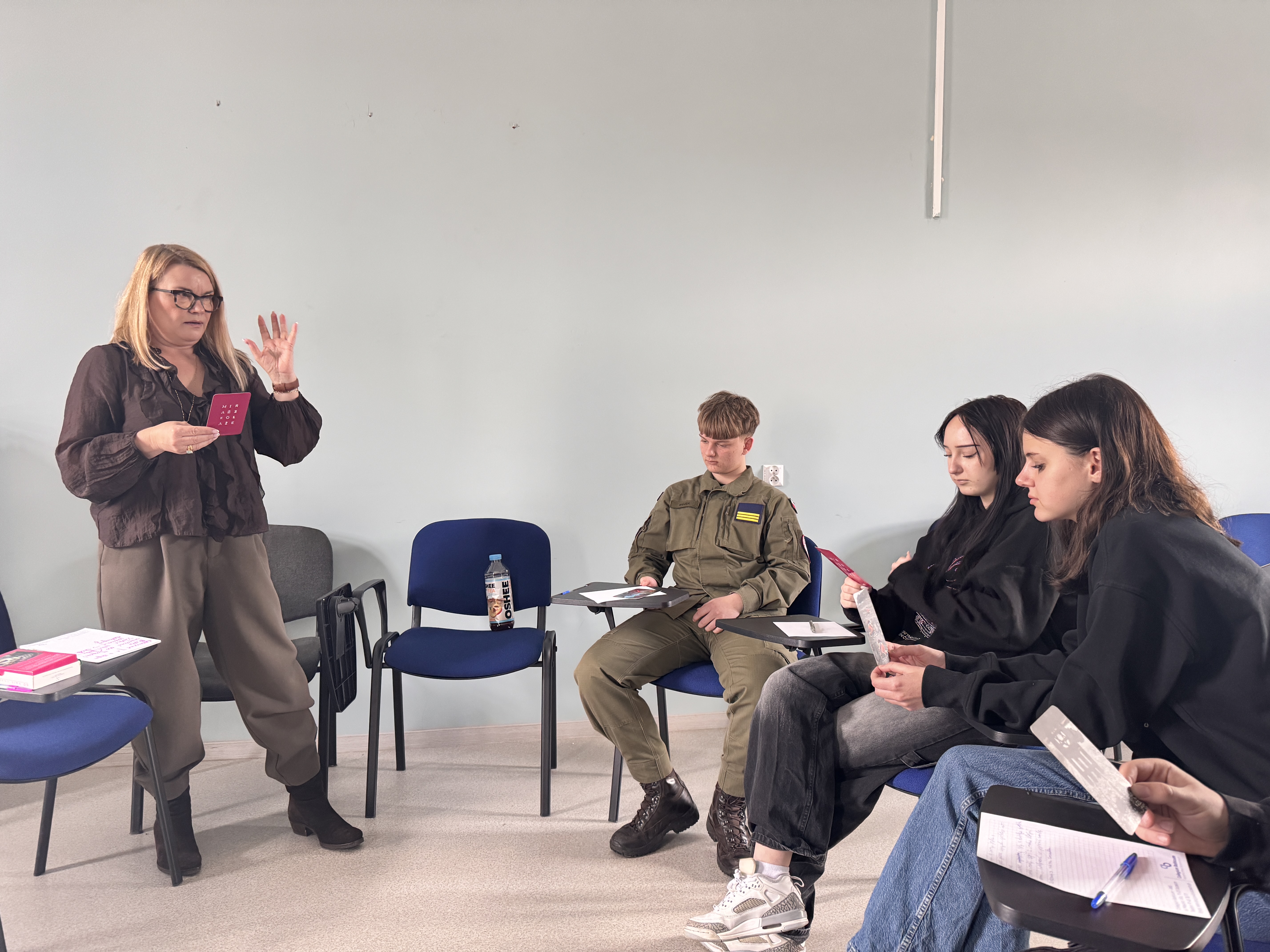Spotkania miały wyjątkowy charakter, uczniowie nie tylko rozmawiali, ale też aktywnie pracowali z wykorzystaniem kart edukacyjnych określających emocje, kart wartości oraz kart coachingowych. Była to okazja do lepszego poznania siebie, swoich potrzeb, mocnych stron i kierunków rozwoju. Ważnym elementem zajęć była również aktywizacja uczniów poprzez rozmowy w parach, które sprzyjały otwartości i budowaniu relacji. Na zakończenie przeprowadzono ewaluację warsztatów w formie burzy mózgów, dając uczniom przestrzeń do wyrażenia swoich opinii i refleksji.