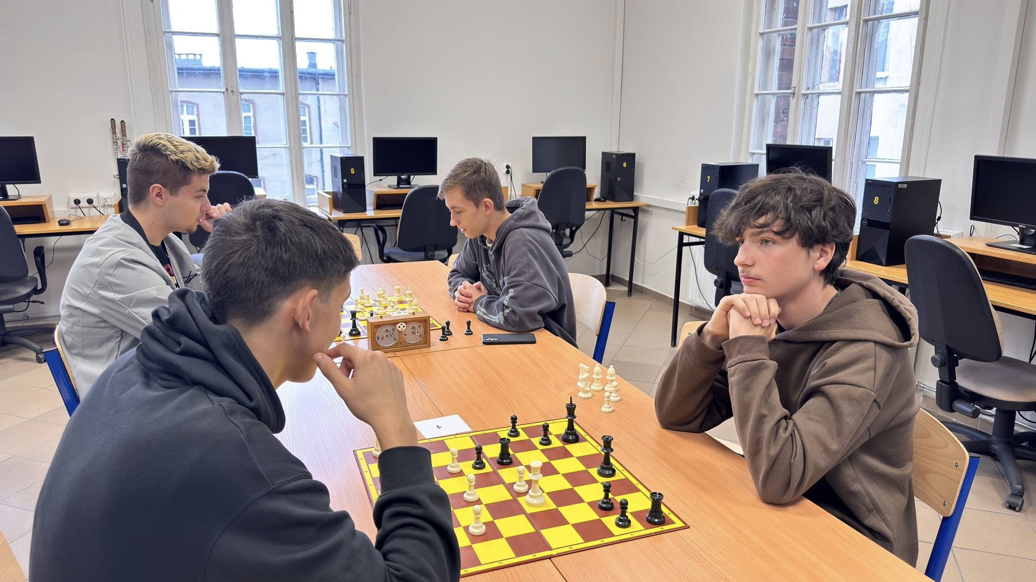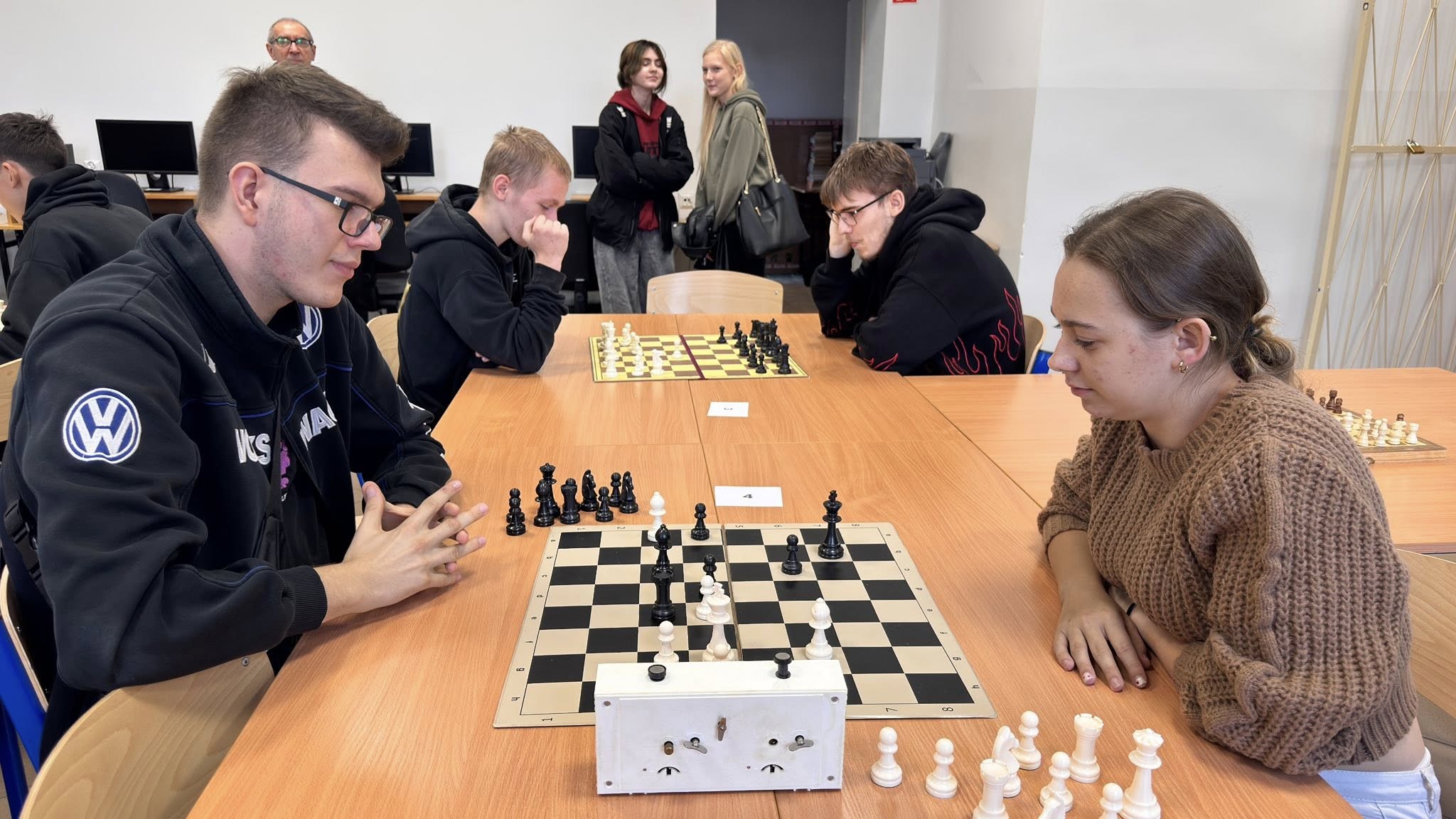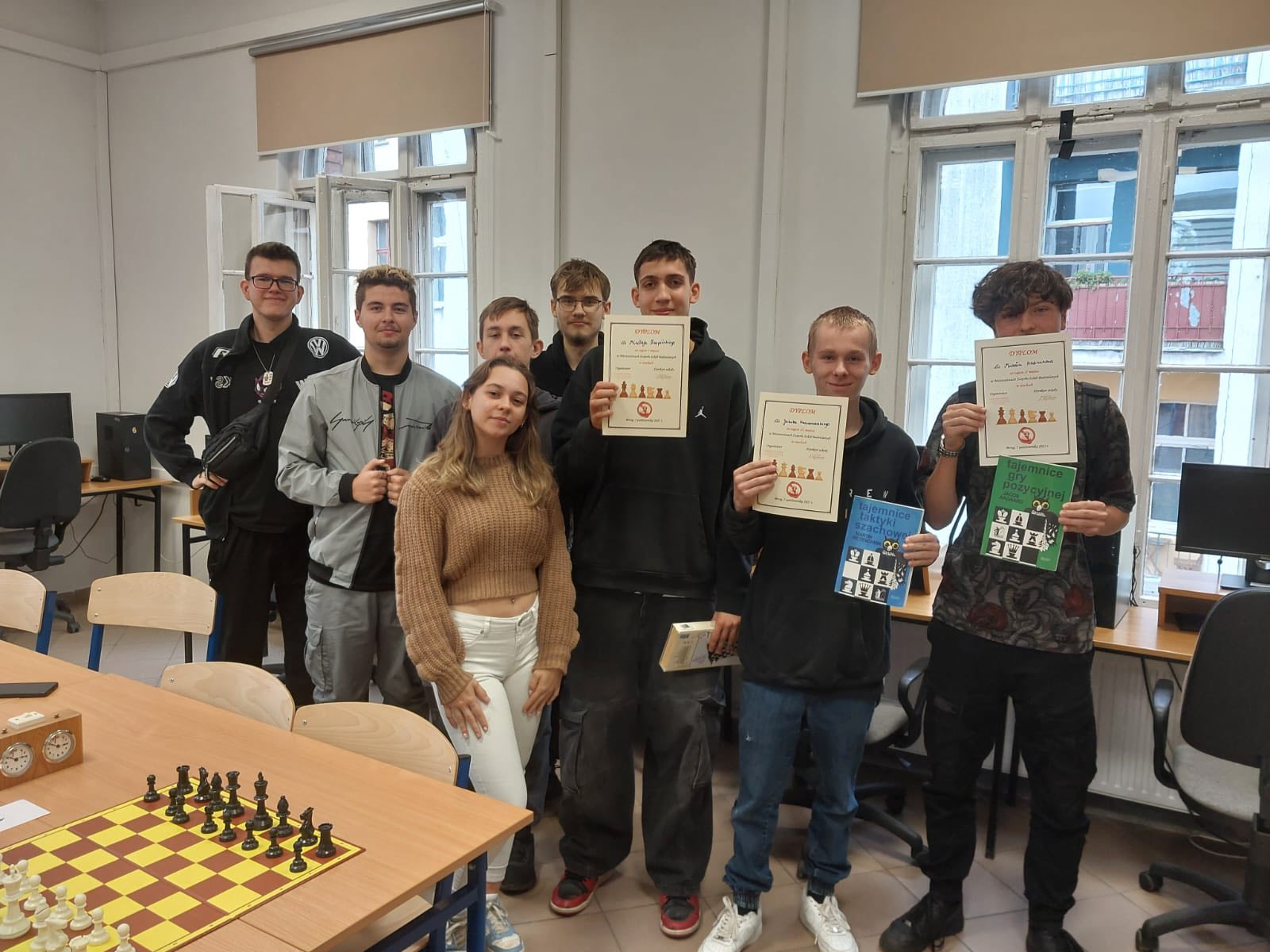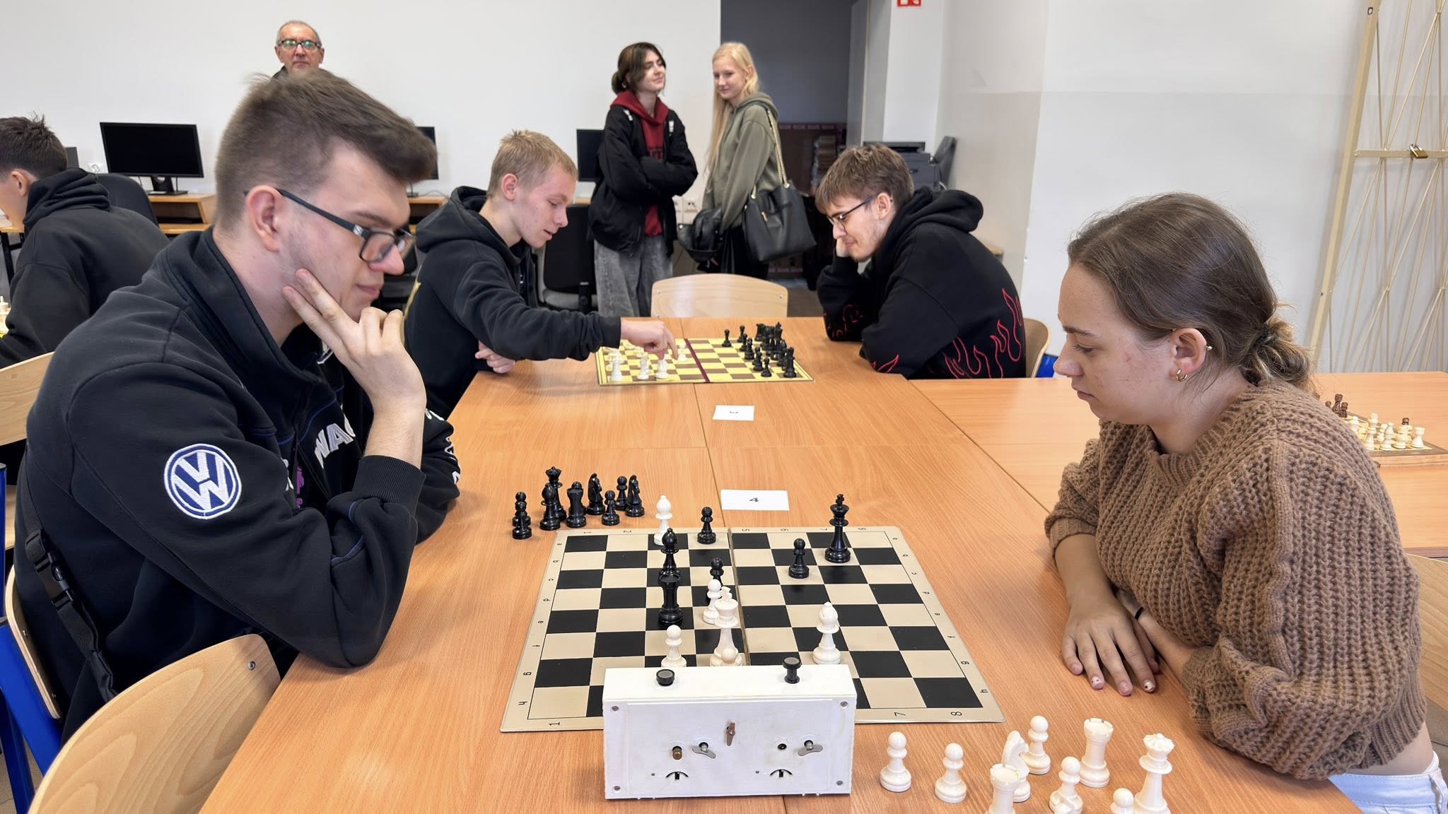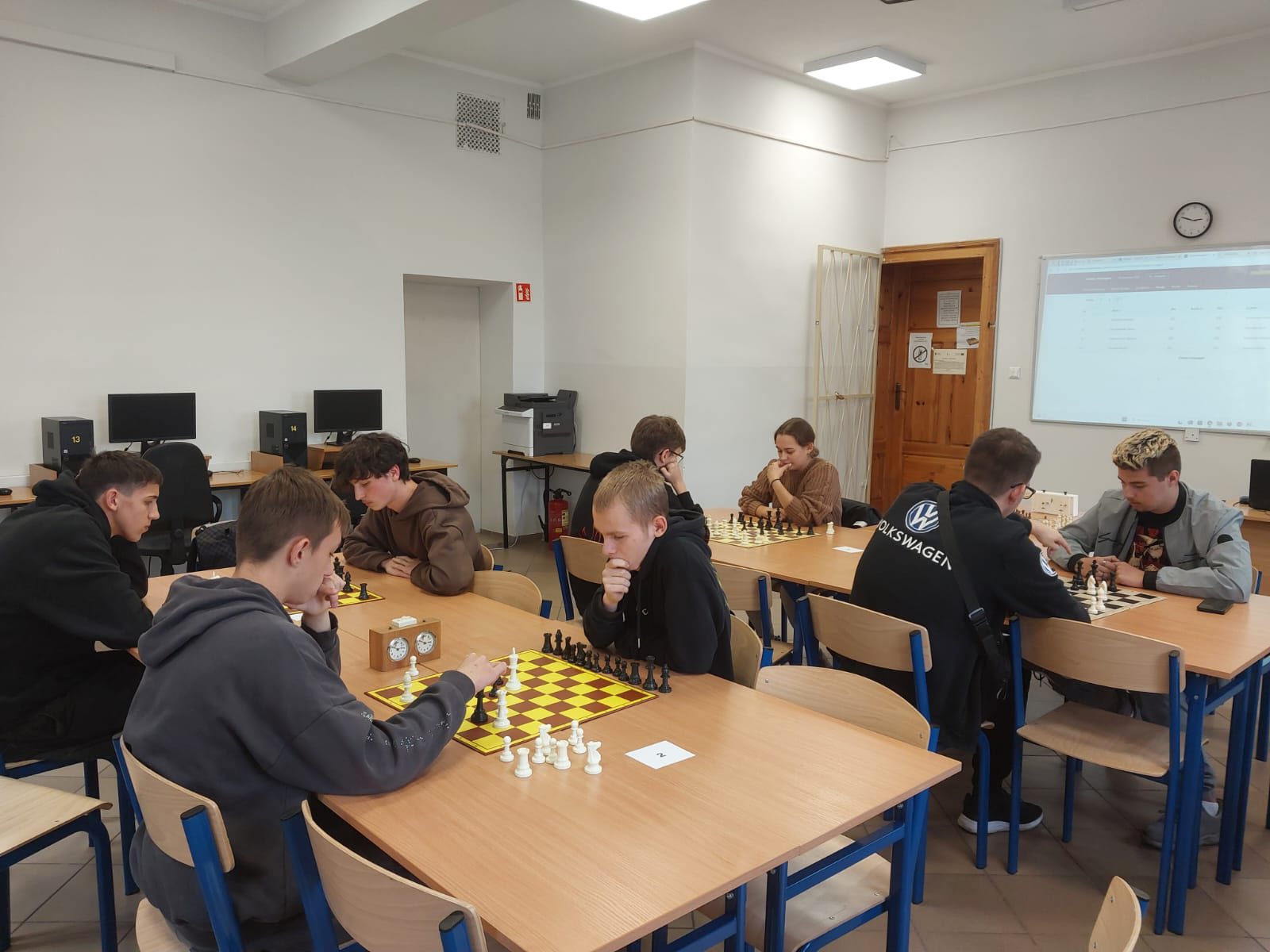 W Mistrzostwach Szkoły w Szachach wzięło udział ośmiu uczniów. Pod nieobecność dotychczasowego mistrza i wicemistrza szkoły, którzy odbywali praktyki zawodowe, szansę na pokazanie swoich umiejętności otrzymali młodsi zawodnicy.